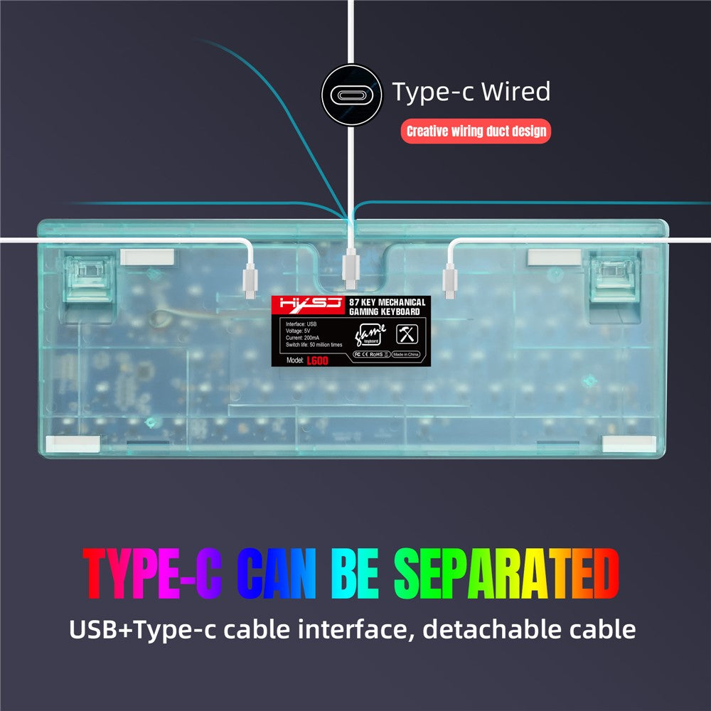 HXSJ L600 Cartoon Pattern 87-Key Mechanical Keyboard Ergonomic Wired Gaming Keyboard