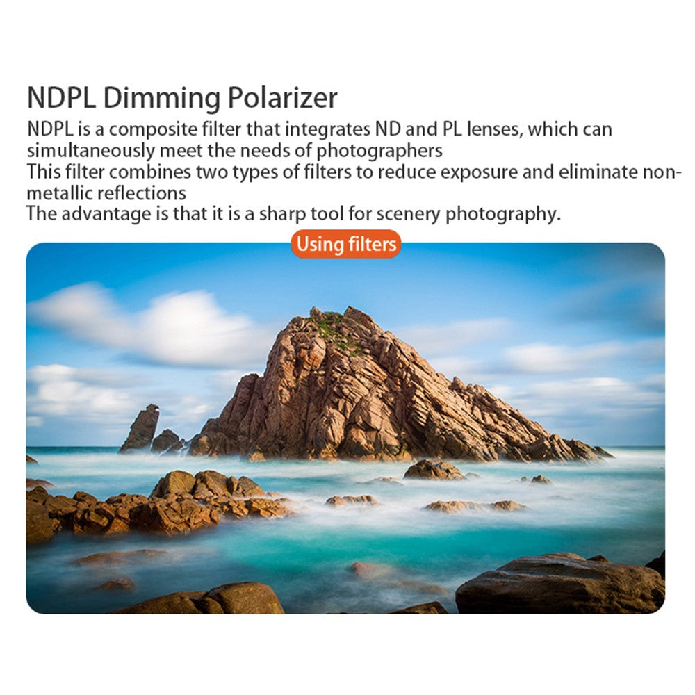 - The filter combines the advantages of ND filter and CPL polarizer, which can reduce the shutter speed and prevents overexposure to create smooth, cinematic and aerial videos