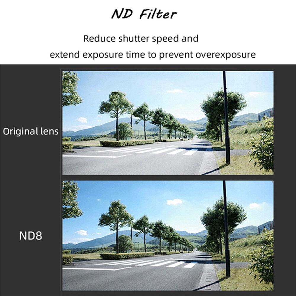 - ND lens filter can reduce shutter speed and extend the exposure time to prevent overexposure
