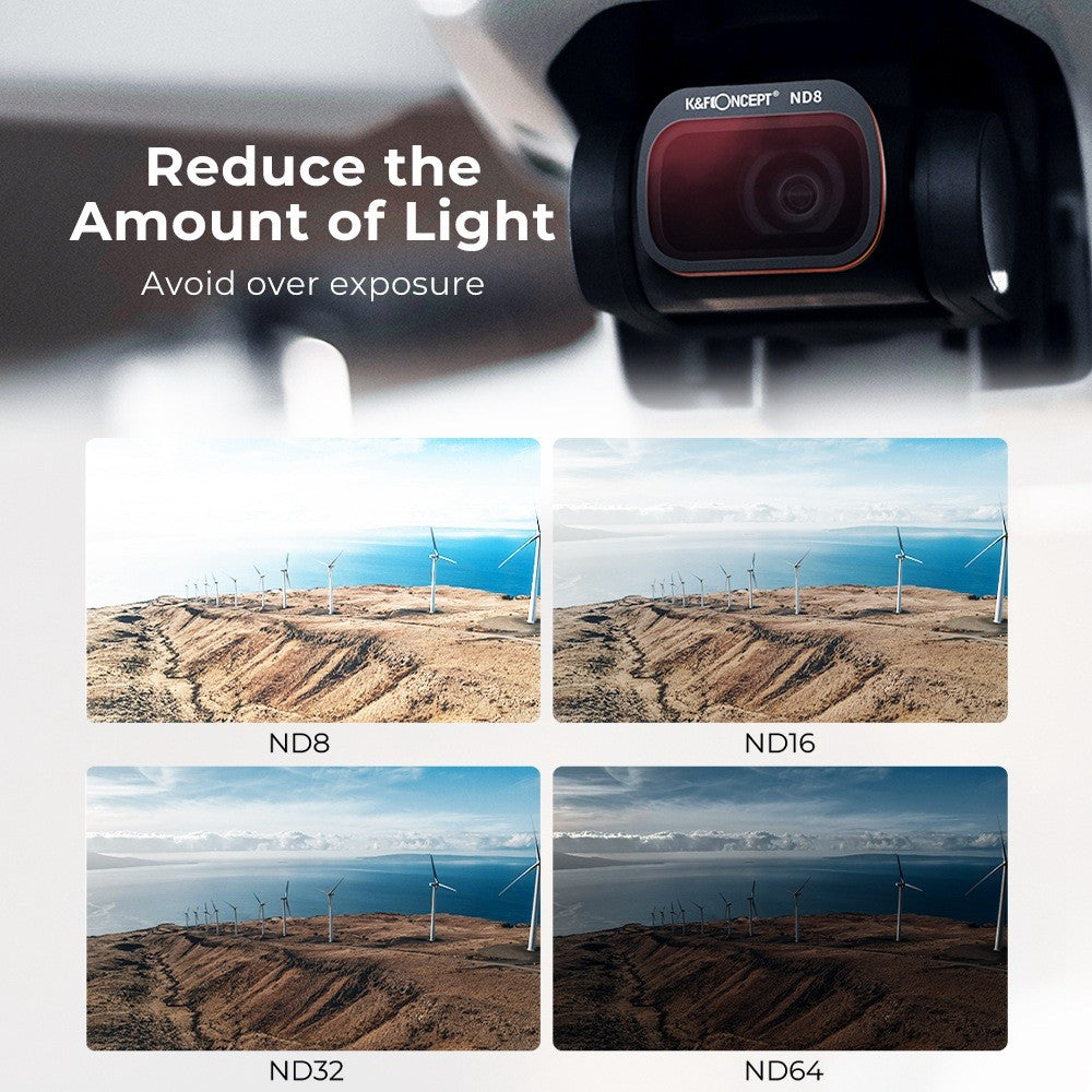 - ND32: Helps reduce the shutter speed by 5 gears. You can use it in very bright sunlight. No color change
