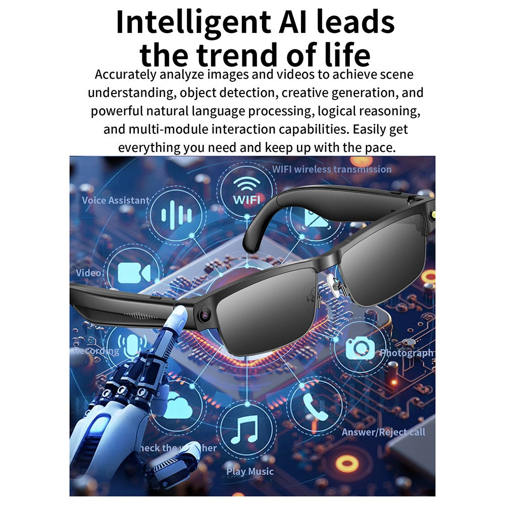 - 【Multifunctional Smart Glasses】Features include Bluetooth-compatible real-time transmission, wear detection, music control, voice assistant, and object recognition.