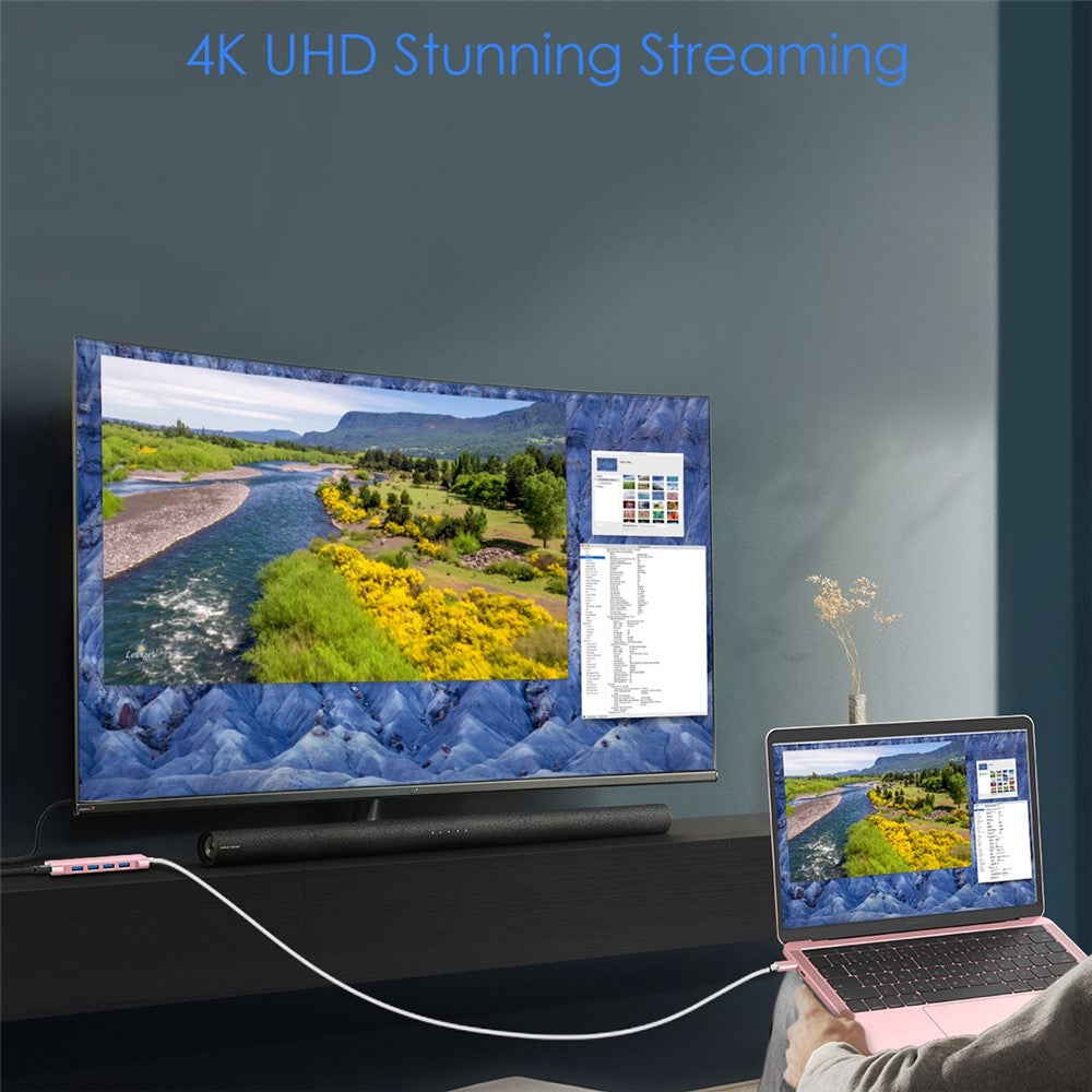 LENTION C35H-1M USB-C Hub Converter Multi-port Docking Station Type-C to 4 USB-A3.0+HD+PD Adapter Compatible with macOS, Windows, Vista, Linux Systems