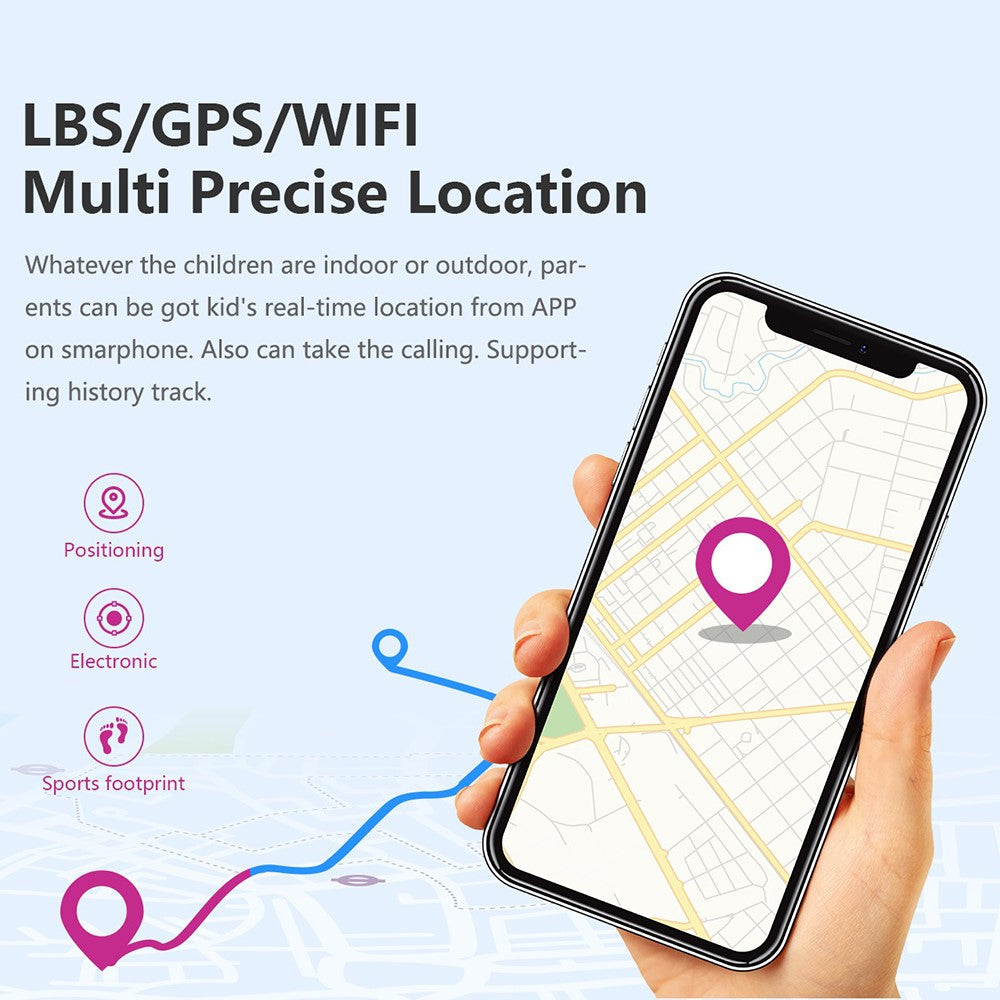 - LBS/GPS/WIFI Multi Precise Location: Whatever the children are indoor or outdoor, parents can be got kid's real-time location from APP on smartphone. Also can take the calling. Supporting history track