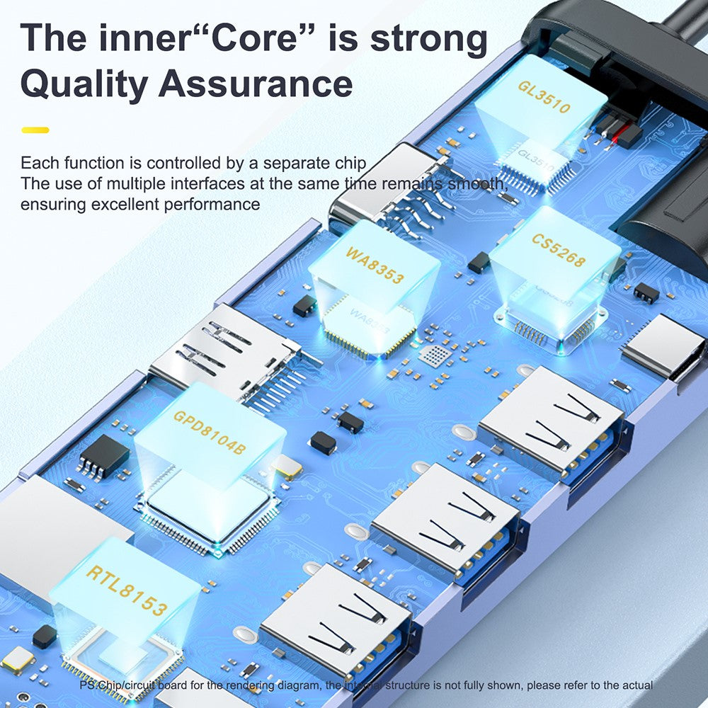 - Powerful Charging: Supports up to 100W PD for fast, reliable charging while using the hub