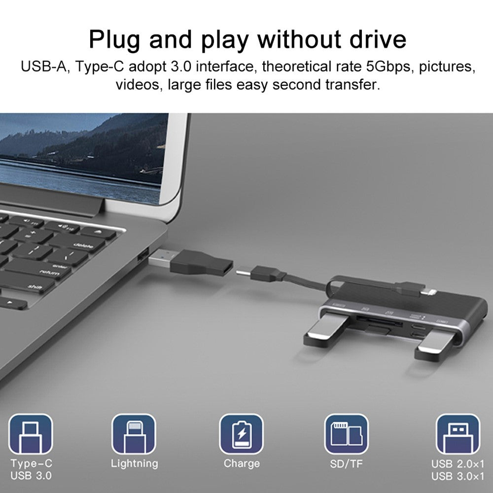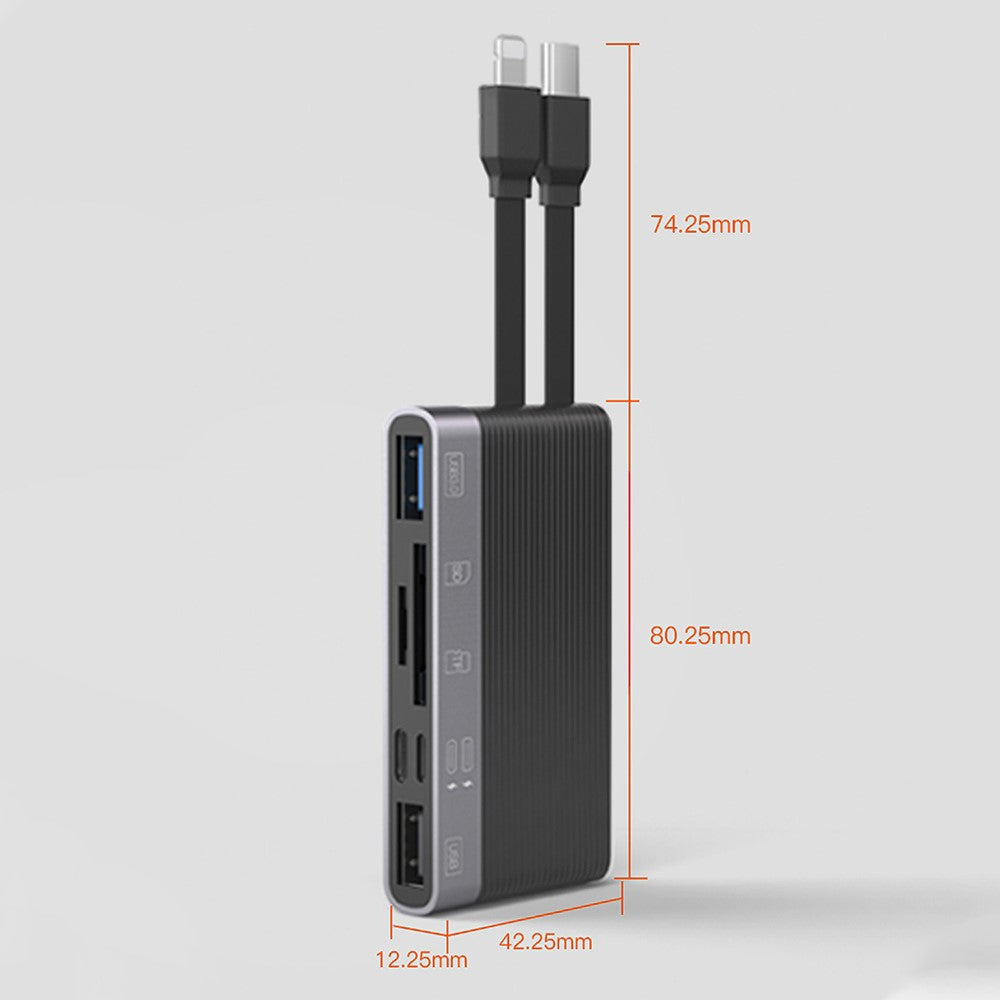 - Function: 8 Pin/Type-C to USB3.0+TF/SD card reader+USB2.0+2 Type-C charging port