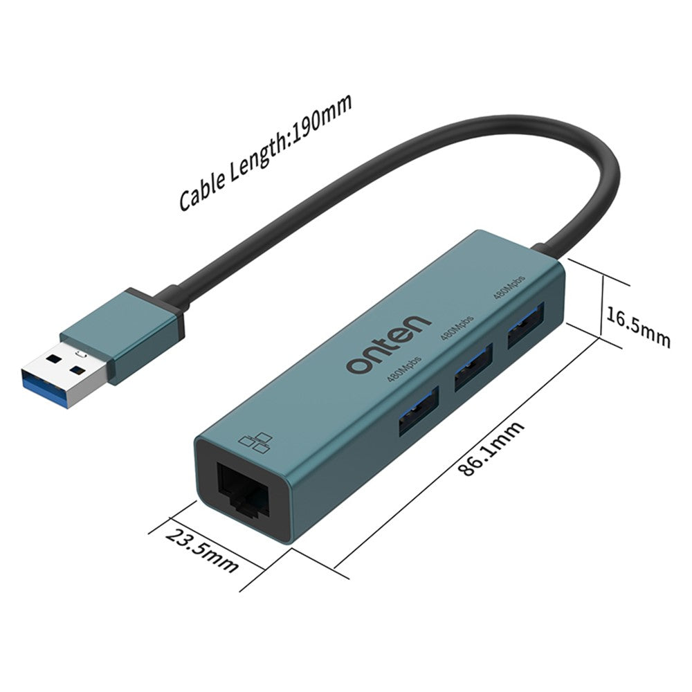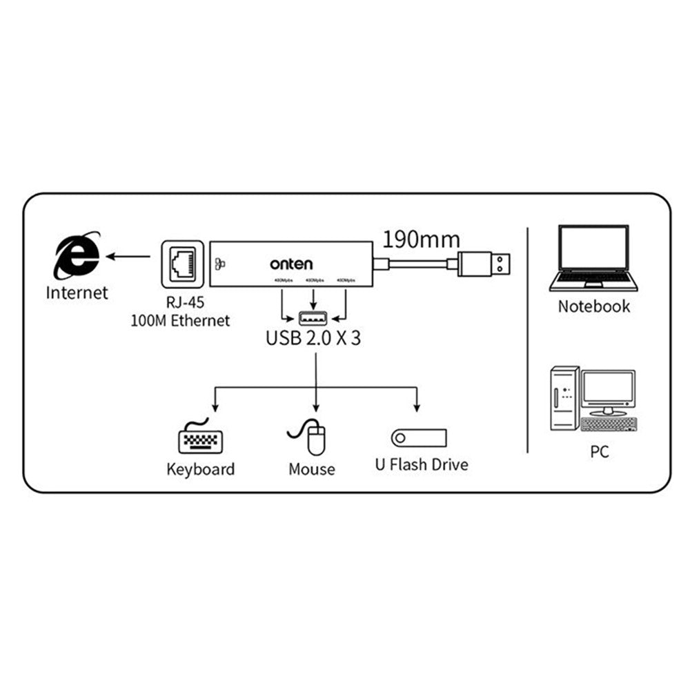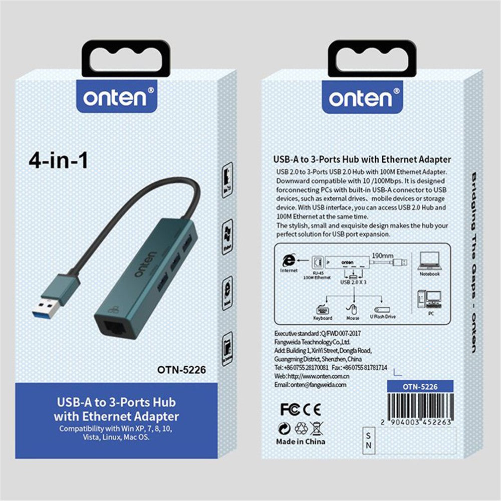 ONTEN 5226 4 in 1 USB Hub 100Mbps Network Card Ethernet Adapter 3 Port USB 2.0 Extension Dock
