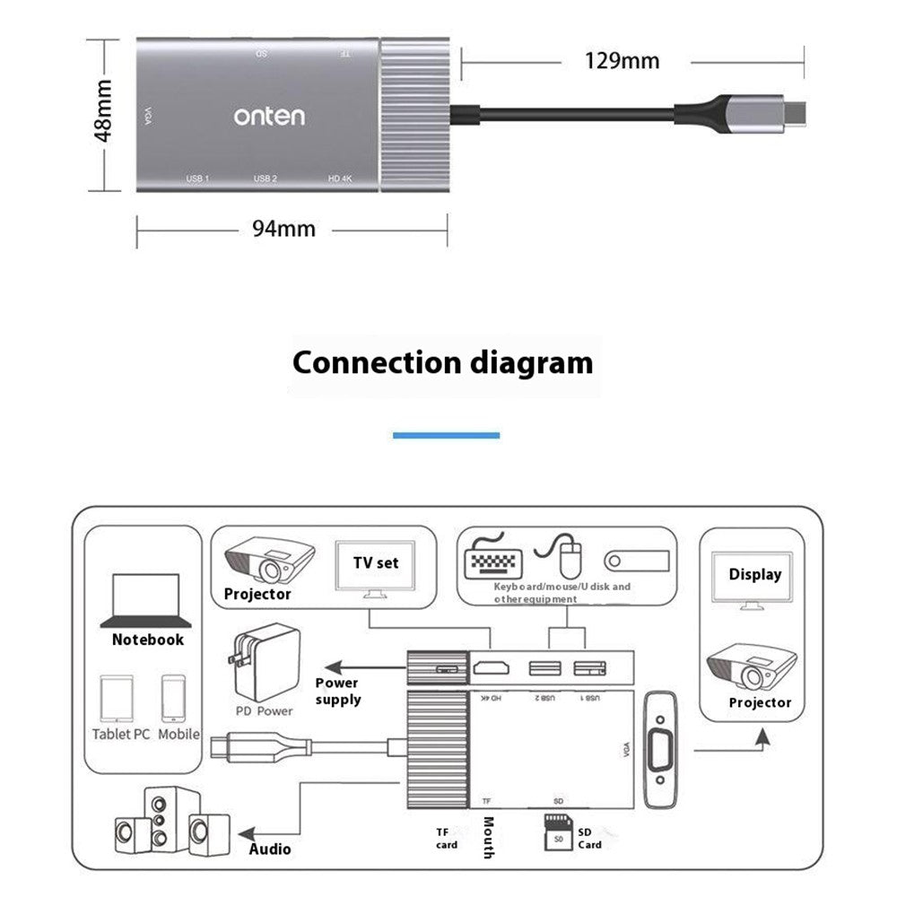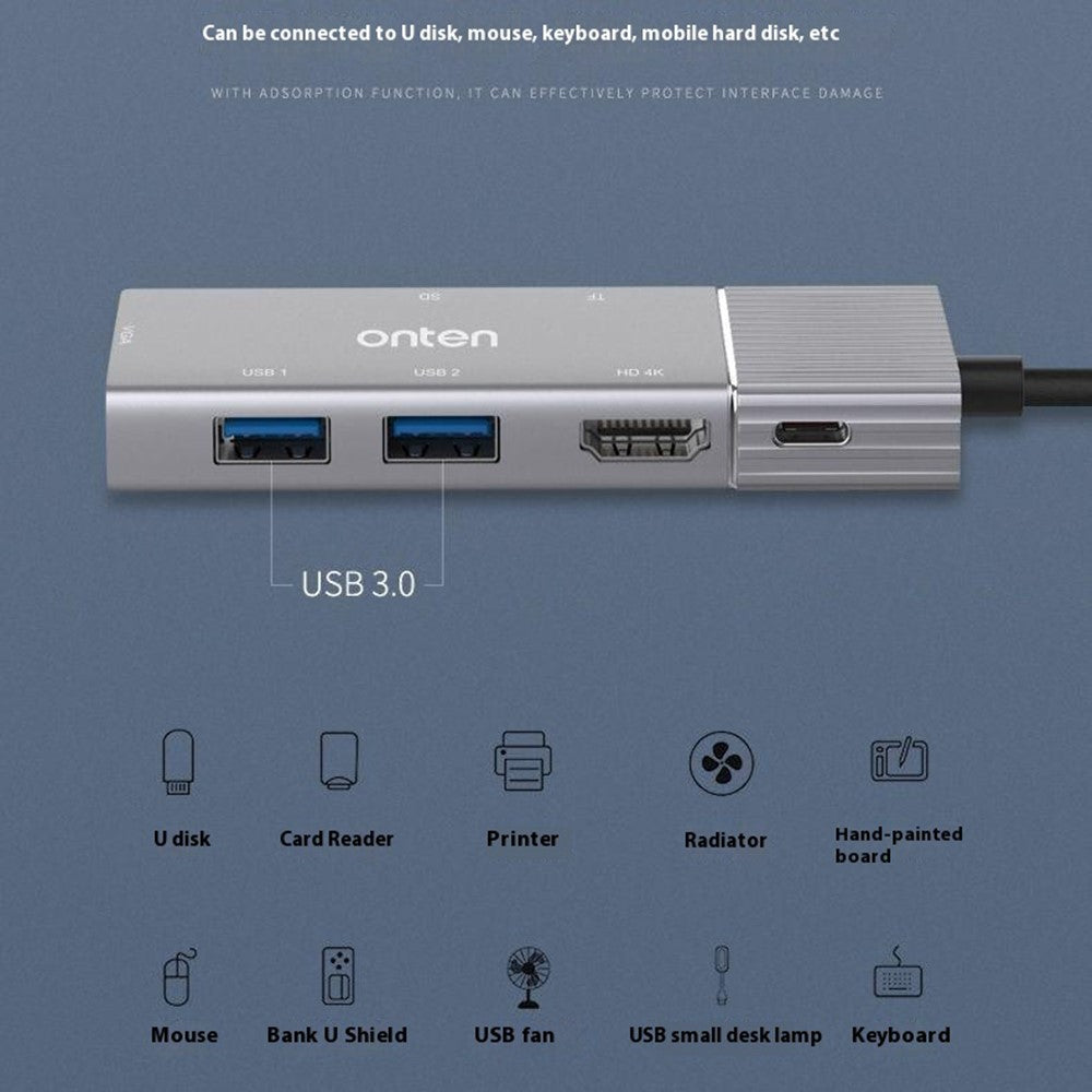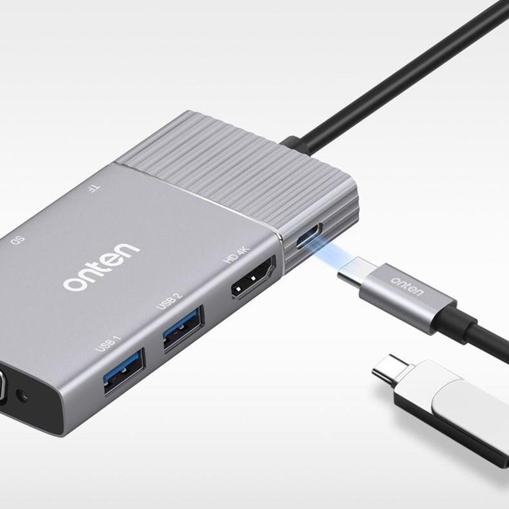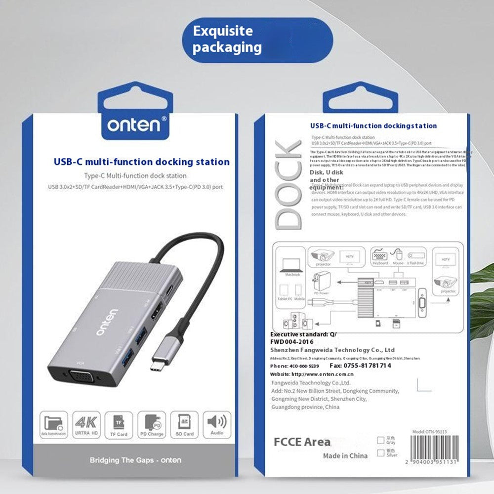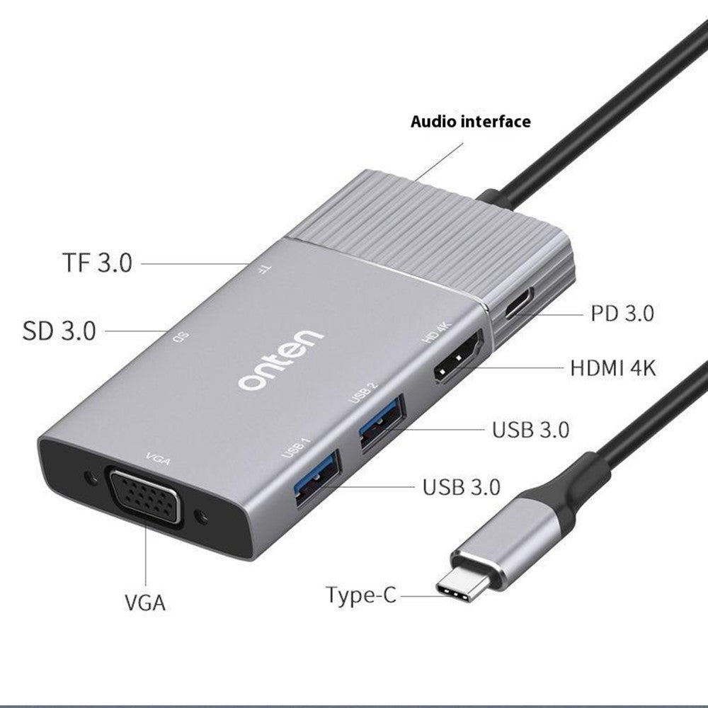 ONTEN 95113 Type-C Hub HDMI + VGA + 2 x USB3.0 + SD3.0 + TF3.0 + Audio + PD Docking Station