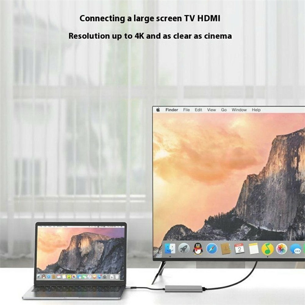 - 【6-in-1 Multifunctional Hub】This versatile Type-C expansion dock offers HDMI output, USB 3.0, USB 2.0 extension, TF/SD card reading, and PD charging capabilities in one compact device.