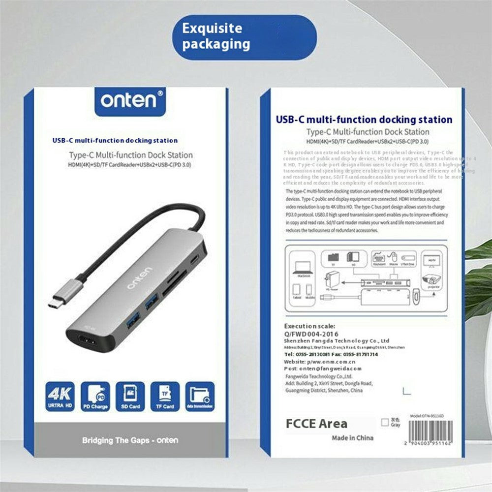 ONTEN 95116D Type-C 6 in 1 Hub Docking Station 4K HDMI USB3.0 USB2.0 PD3.0 TF SD Card Reader Adapter