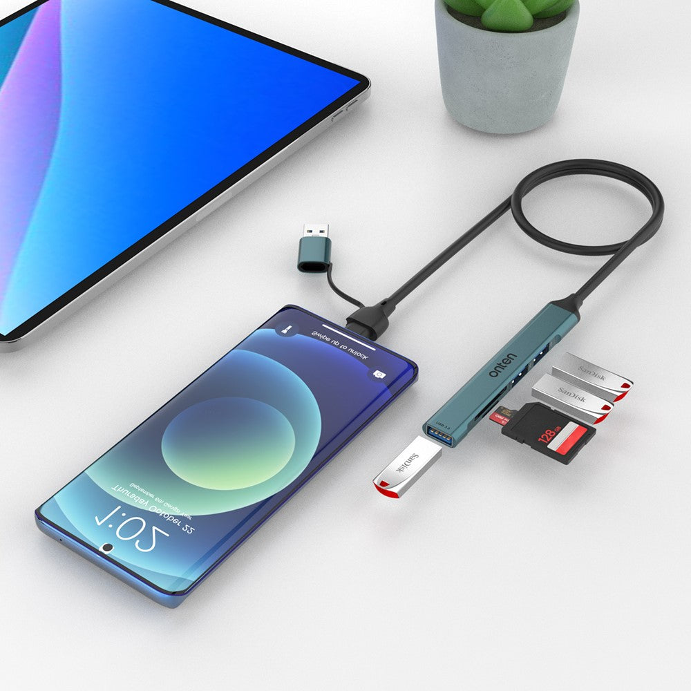 ONTEN UCA9705 Mini Portable USB Hub USB-A / C to USB 3.0 + 2 USB 2.0 + SD / TF Card Reader OTG Adapter