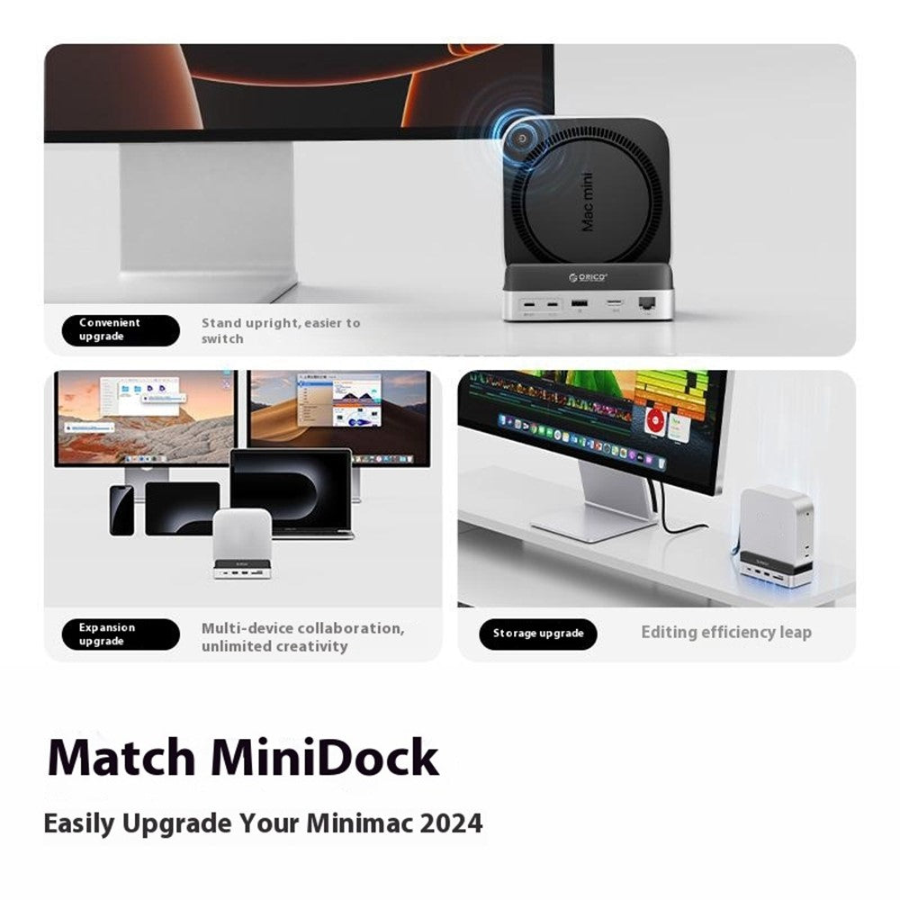 ORICO VS10 For Mac mini(2024) 512GB M.2 SSD Enclosure Desktop Expansion Dock Stand USB + HD + RJ45 + SD / TF Card Reader 10 in 1 Docking Station