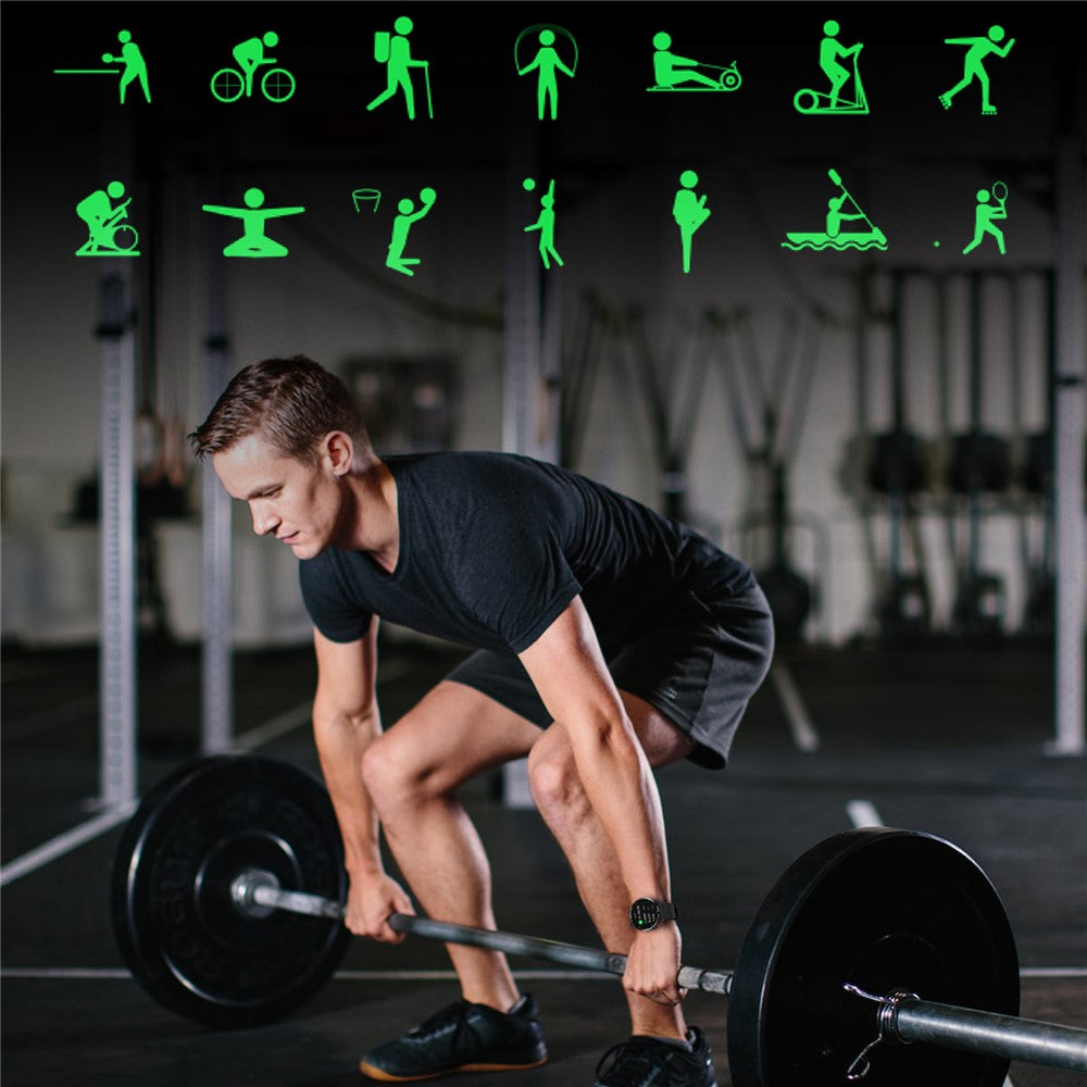 - Function: Bluetooth-compatible call, 6 sets of menu styles, supporting multiple dials, breathing training, customized dials, step counting, brightness adjustment, multiple sports mode, sleep detection, heart rate, blood pressure, blood oxygen, information push, remote music, remote photography, real-time weather, finding mobile phones (connected to mobile phones), Bluetooth-compatible music playing, calendar, timer, stopwatch, voice assistant, alarm clock, do not disturb mode