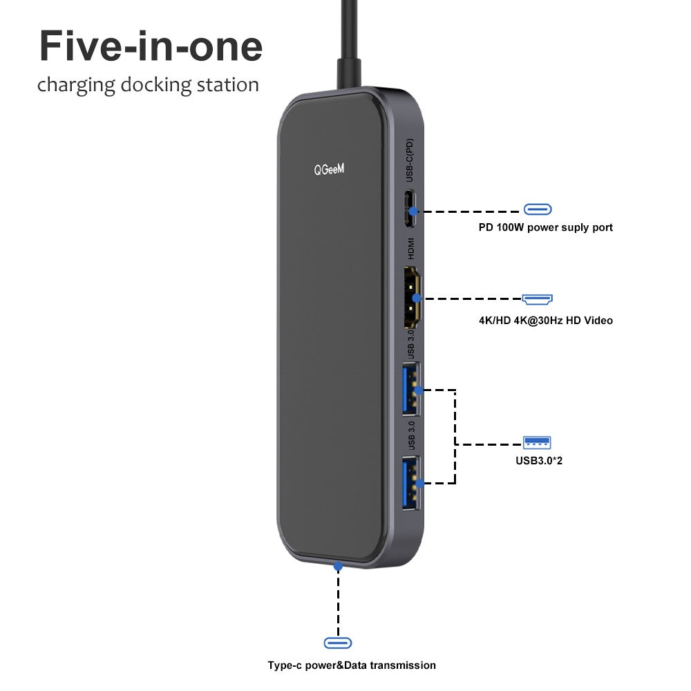 QGEEM QG-UH05-5 USB C Hub to 4K Resolution HD Video+2xUSB 3.0+PD Fast Charger+USB C Adapter for MacBook/MateBook/Other Type-C Devices