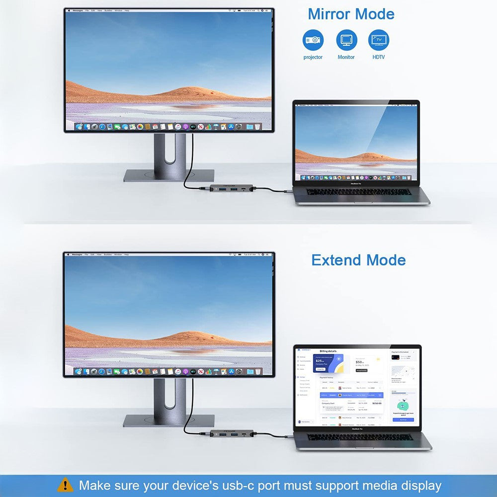 - 【Easy to Use】Plug and play, no external driver required, Type-C charging port can transmit up to 100W of power for USB-powered laptops, and provide additional power for hard drives, DVD drives and accessories connected to the USB port at the same time (not suitable for Apple SuperDrive)