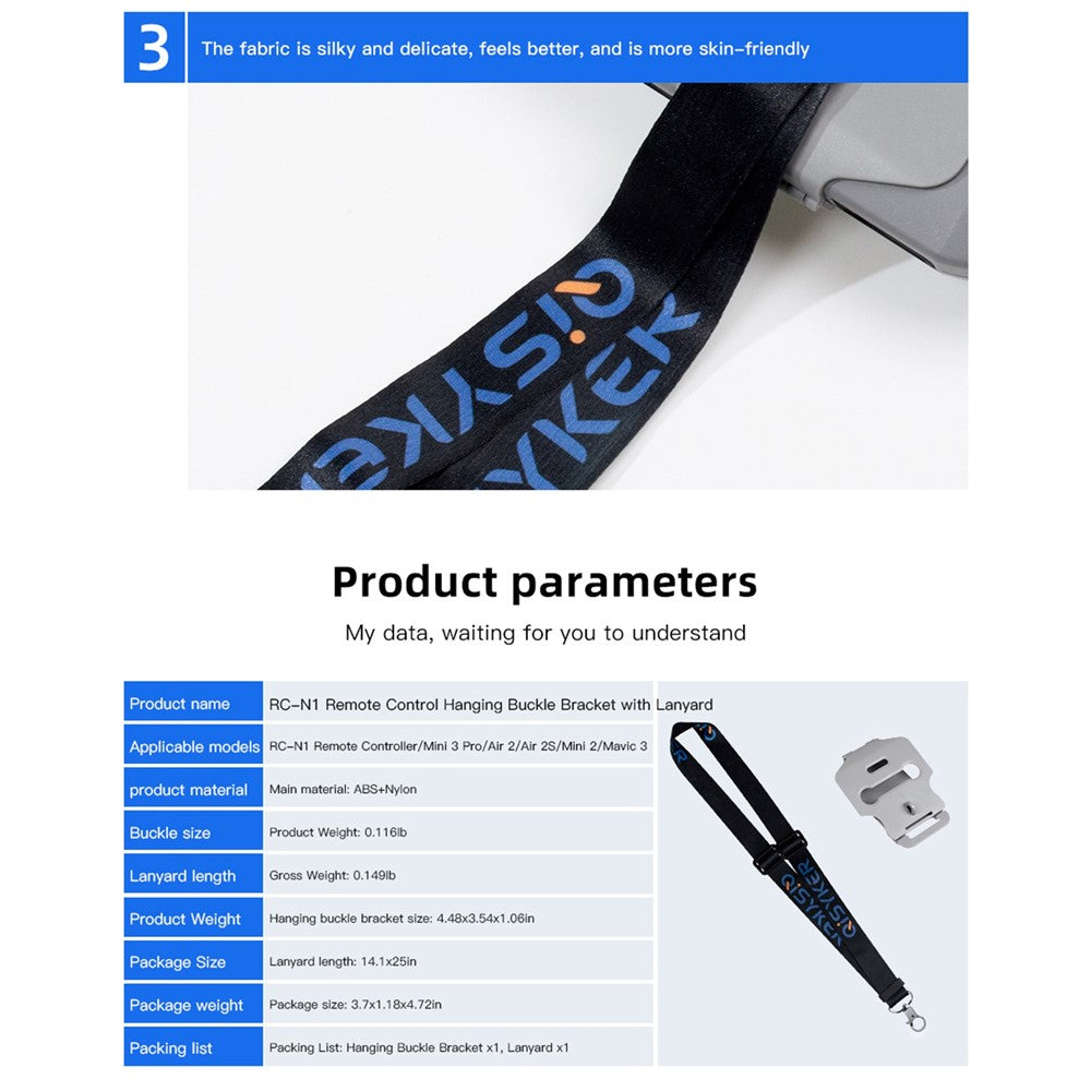 QISYKER DARCN516 for DJI Mini 3 Pro/Air 2/Air 2S/Mini 2/Mavic 3 RC-N1 Remote Control Adjustable Lanyard with Hanging Buckle Bracket