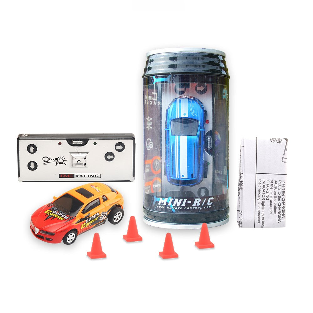 QT666 Mini 1:64 Drink Can Design RC Car with Remote Controller Road Blocks Drift Racing Car Toy Children Boys Gift