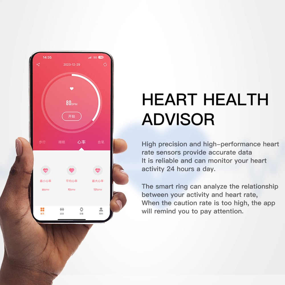 - 【24/7 Heart Rate Monitoring】Equipped with high-precision sensors, the smart ring continuously tracks heart activity, offering accurate and real-time data to monitor your cardiovascular health