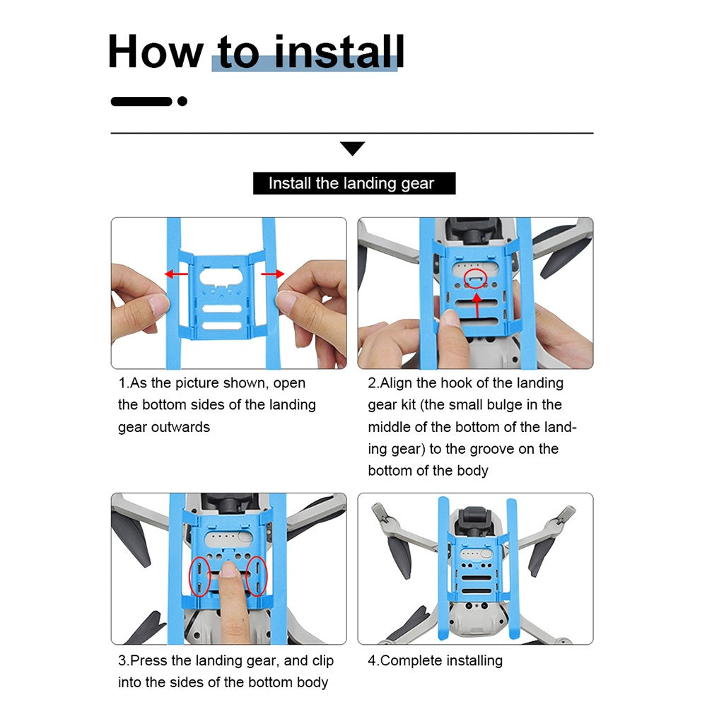 - Effectively increase 15mm, avoiding ground debris from soiling the fuselage and damaging the gimbal during takeoff and landing