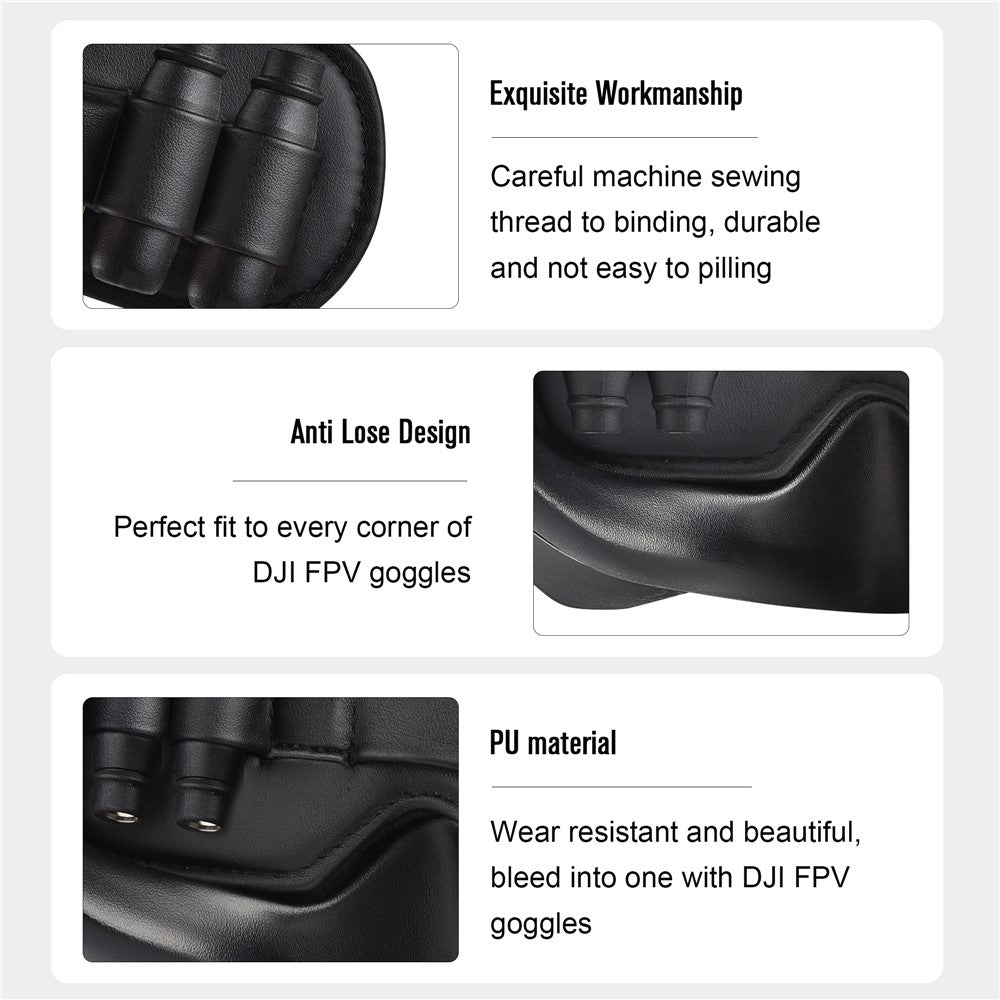 - Specially designed for DJI FPV goggles, bringing good effect of sunshade and dust-proof. It can store FPV goggles antenna and SD cards