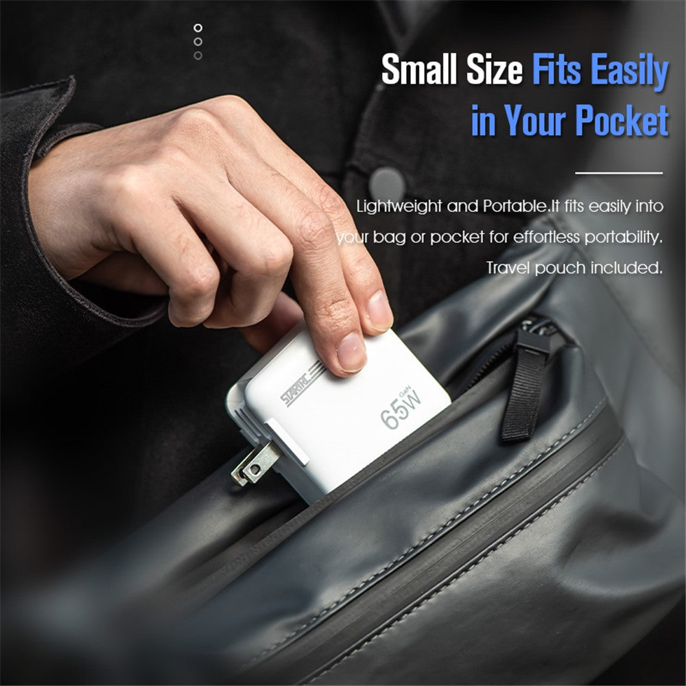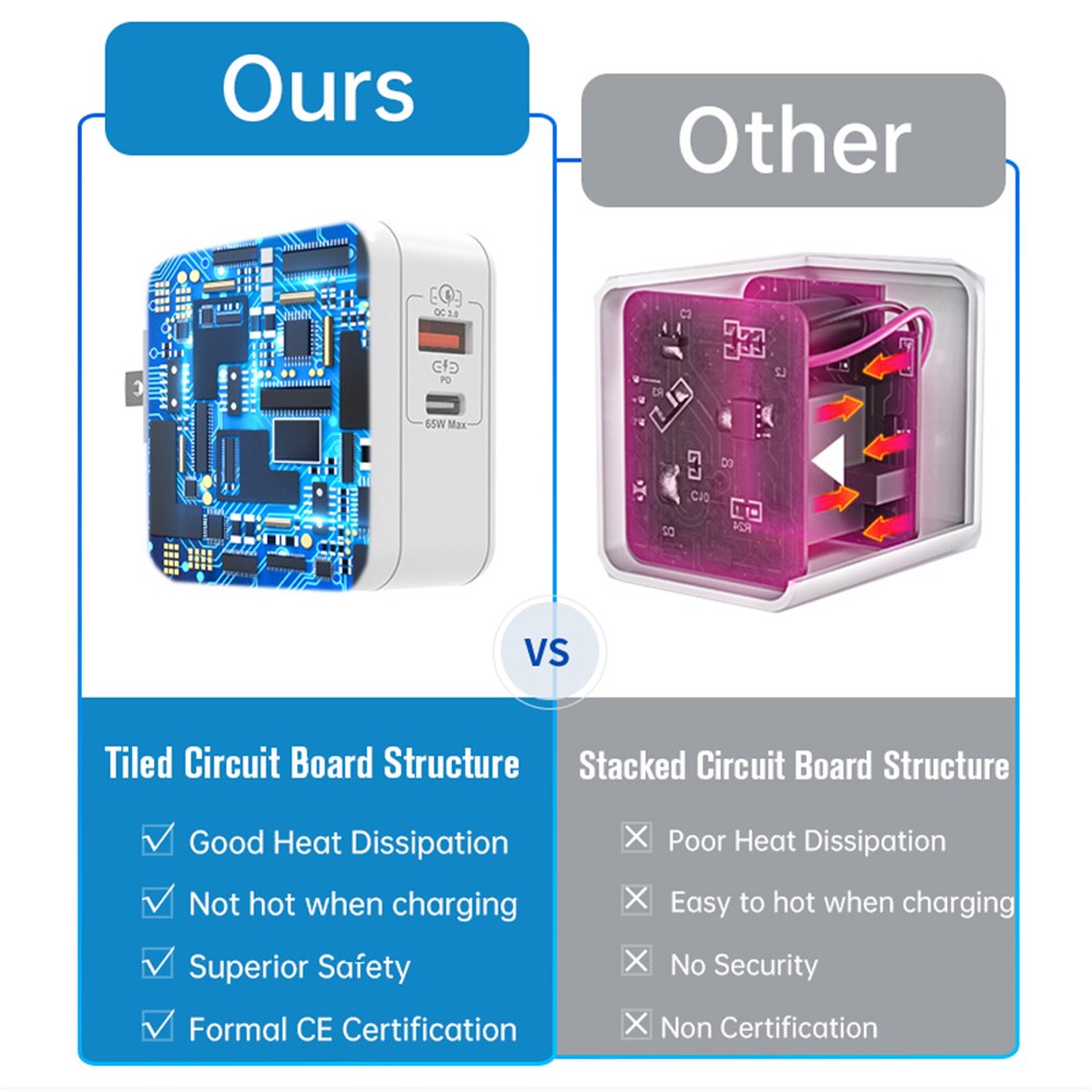 - Dual-port 65W GaN fast charging, support smart matching fast charging with multiple protocols like PD3.0, PD2.0, QC3.0, QC2.0, FCP, SCP, AFC, PPS, MTK and other fast charging protocols