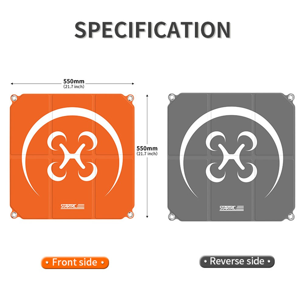 - 55*55cm size, easy to fold allows you to bring it anywhere. Help your drone find a home position easily, strong enough to use on sand, overgrown grass, uneven dirt road or in the snow
