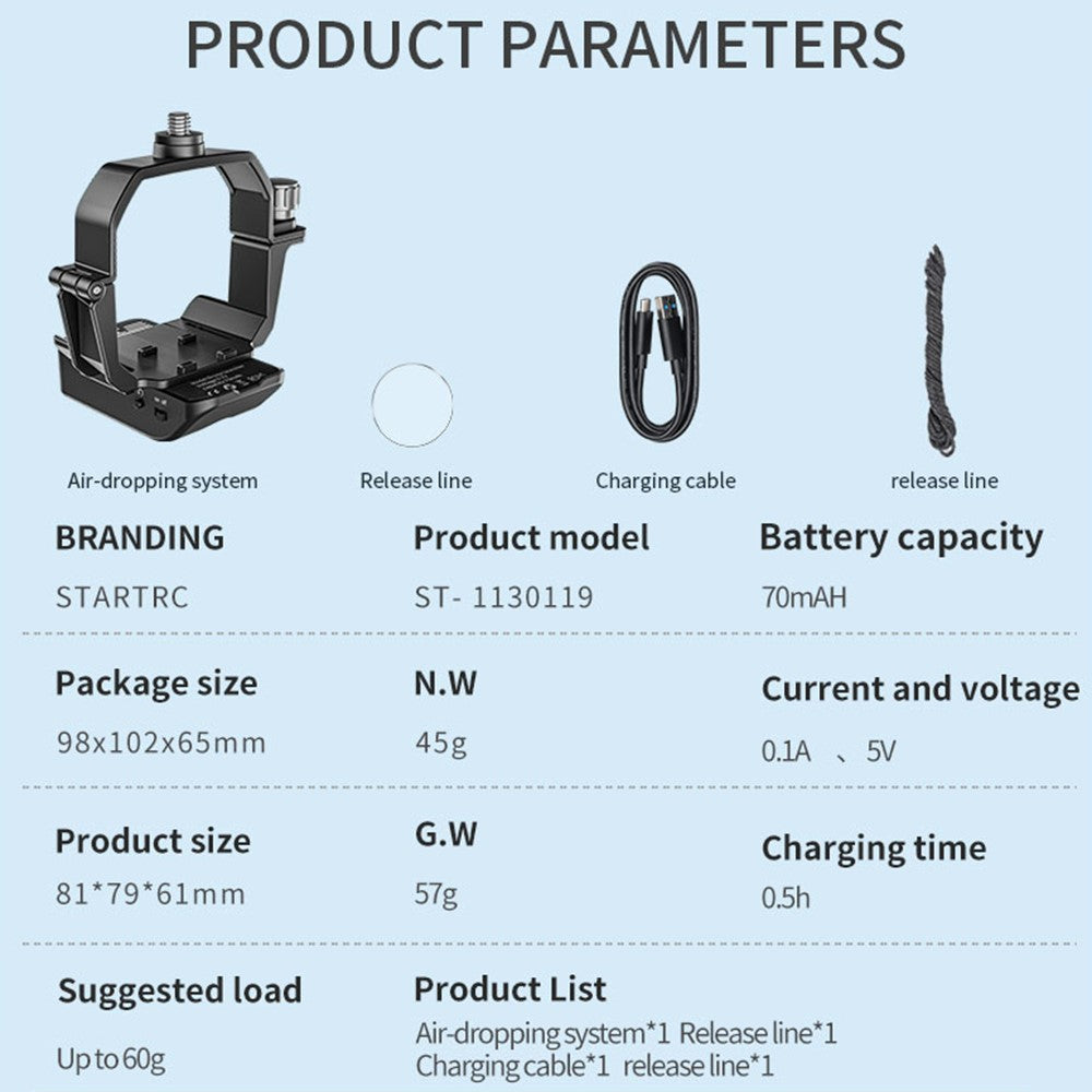 STARTRC 1130119 Light-Sensitive Dropping System for DJI Mini 4 Pro Drone Thrower Airdrop Payload Transport Delivery Device, Built-In Battery