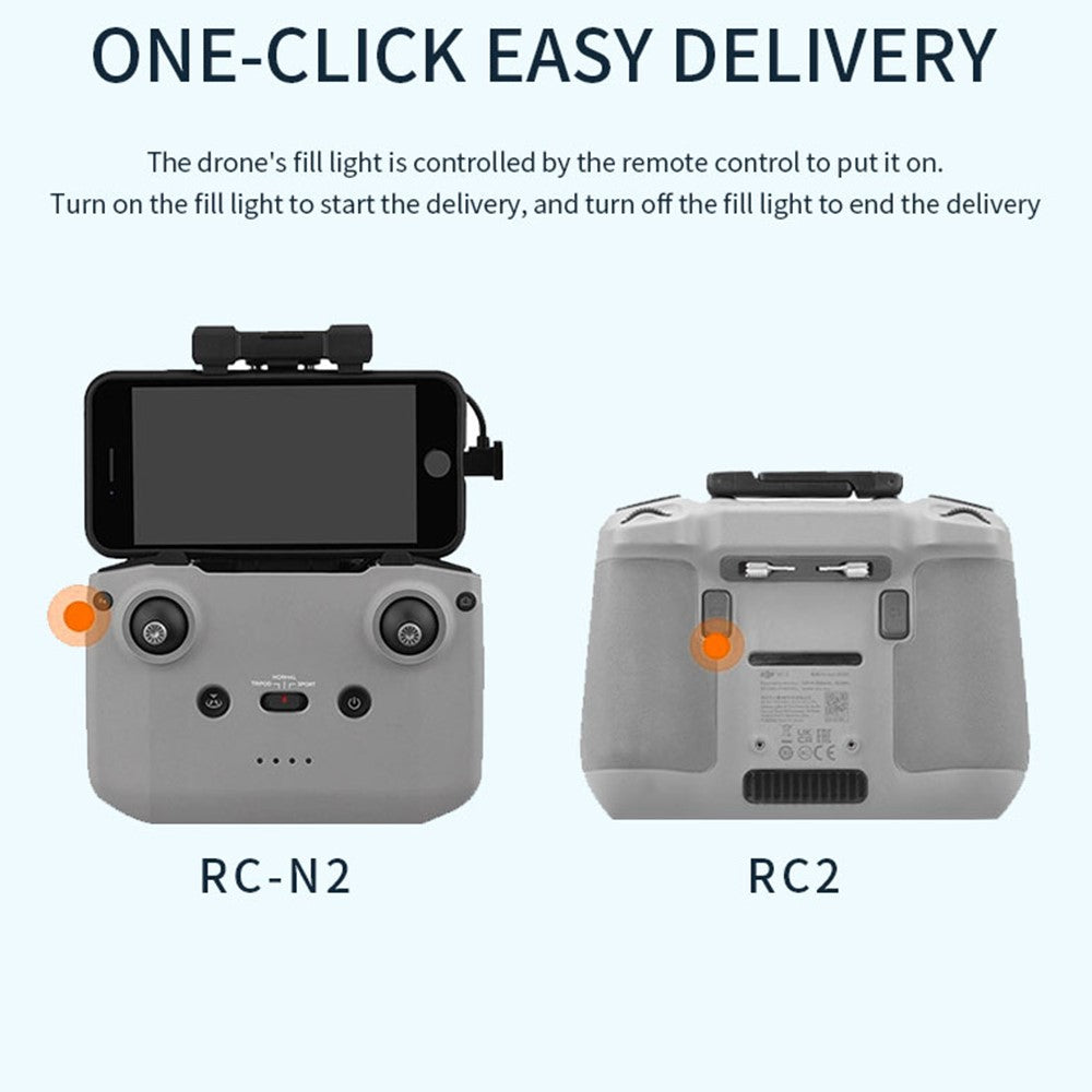 - Photosensitive setting allows direct control of delivery by remote control. Use the remote control to control the drone's fill light to drop items. Turn on the drone's fill light to start dropping, and turn off the fill light after the drop. The delivery distance is the same as the drone's remote control distance