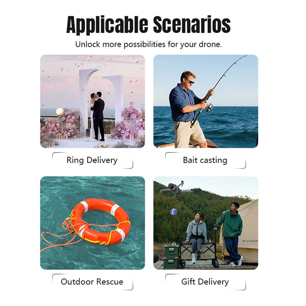 - 【Versatile Applications】Ideal for various scenarios including advertising, fishing bait dropping, gift delivery, wedding flower drops, ring deliveries, food delivery, outdoor medical supply drops, family reunions, and holiday celebrations like Halloween, Christmas, Valentine's Day, birthdays, and beach parties.