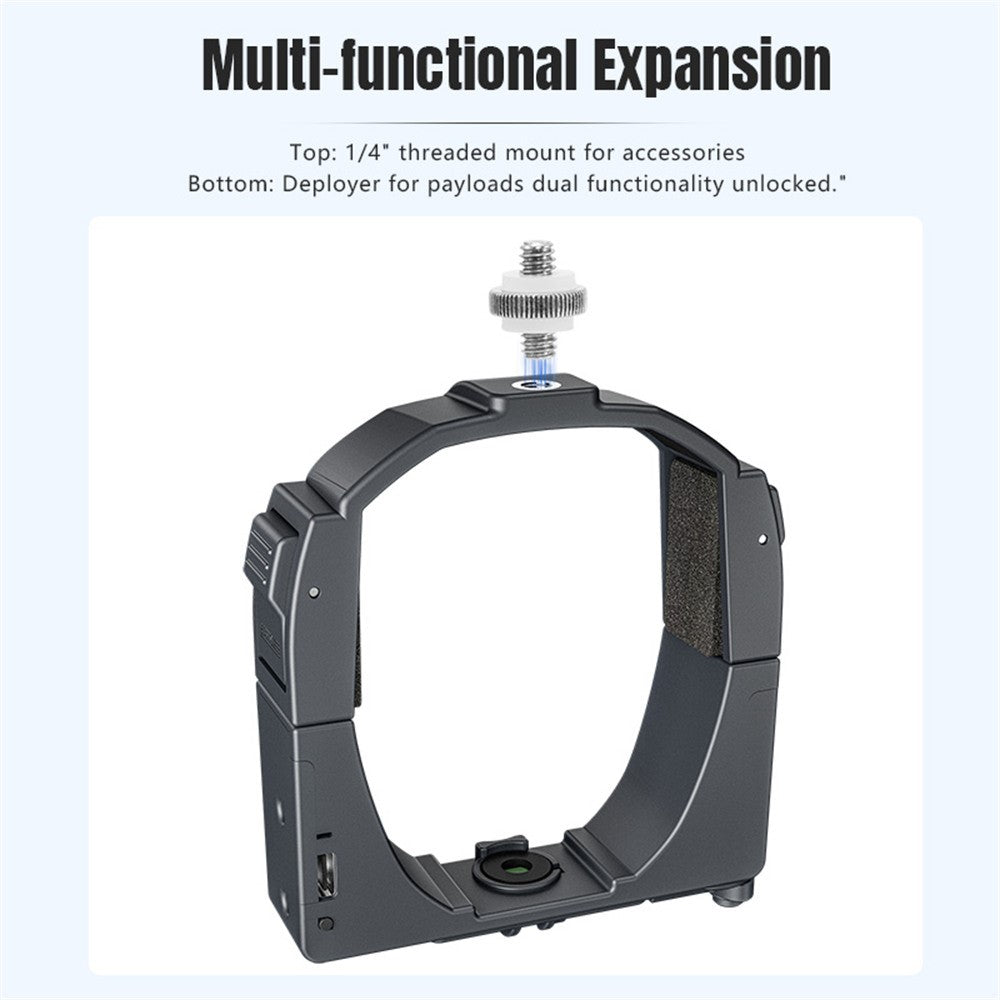 - 【Dual-Function Design】Customized for DJI Mavic 4 Pro drone, this device combines an expansion bracket and a drop mechanism. The upper part features a 1/4" screw for mounting action cameras or small accessories, while the lower part functions as a payload dropper, offering versatile usage.