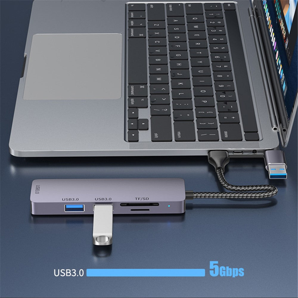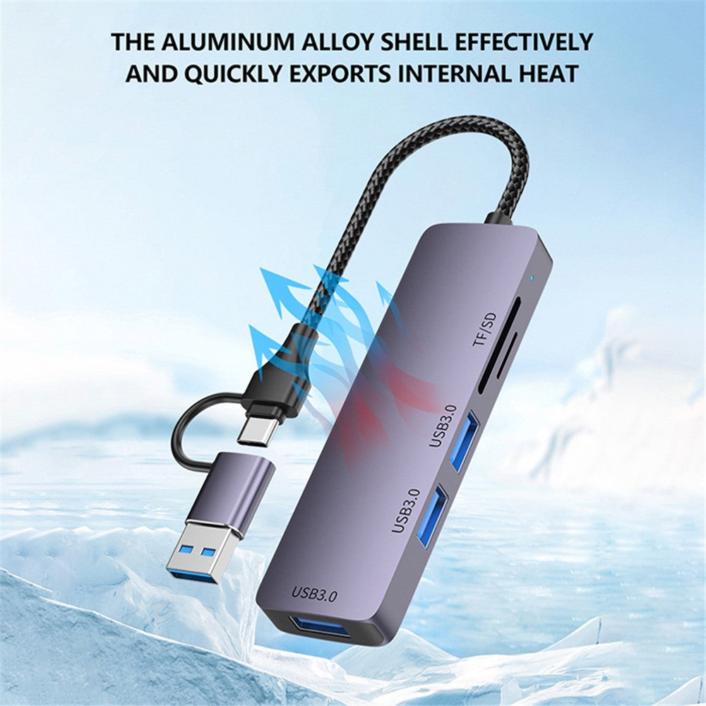 T235 Multi-Port Hub USB+Type-C 3.0 Adapter to 3xUSB 3.0+2xCard Reader Slots