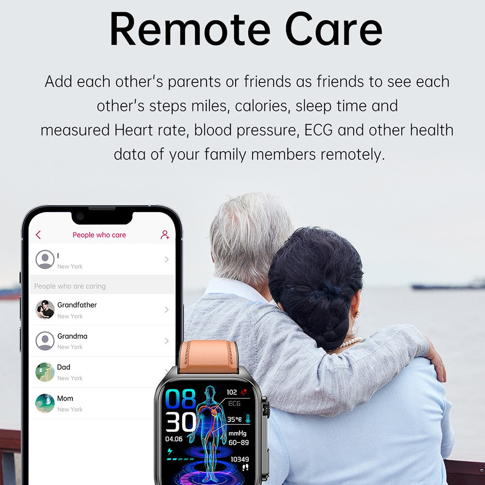 - Bluetooth-compatible calling, ECG monitoring, temperature monitoring, blood glucose monitoring, sleep monitoring, photo shaking