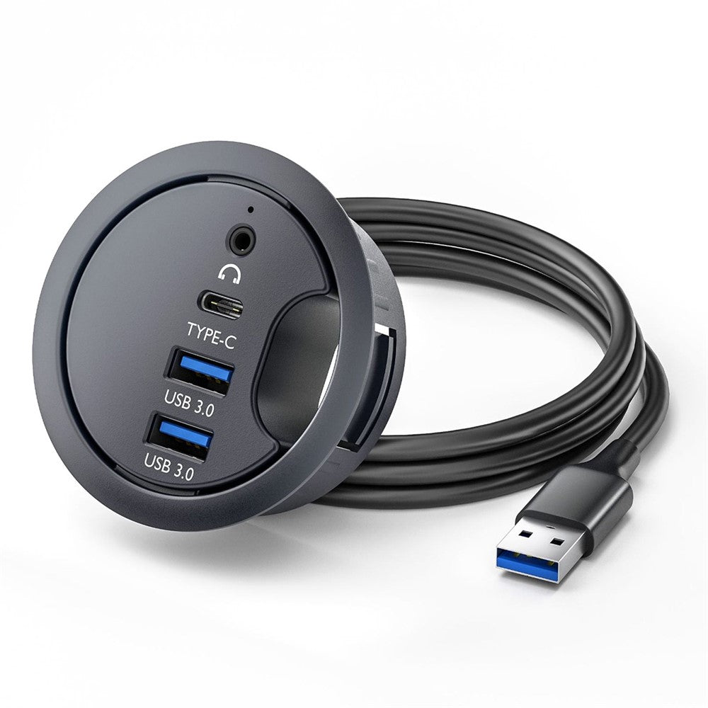 U3-095-HUB05 USB 3.0 Hub 2xUSB3.0 + 3.5mm + Type-C 60mm Desk Grommet Splitter Dock Station