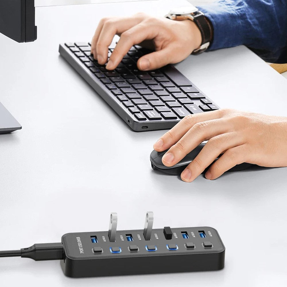U307 7-Port USB 3.0 Hub Splitter without LED Lights with Individual On / Off Switches for PC / Smart TV