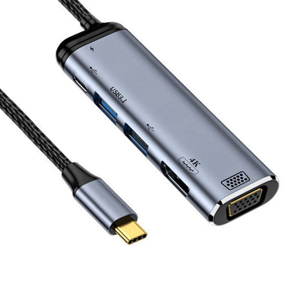 UC-027-Y002 USB-C Type C to HD VGA Dual USB 3.0 HUB Converter HDTV Adapter 4K 60Hz 1080P with Female PD Power Port