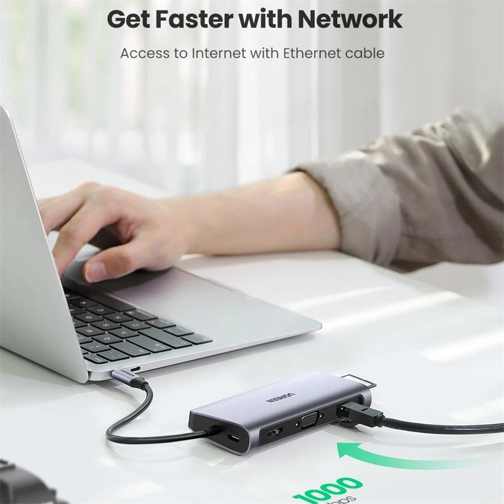 UGREEN 10 in 1 USB-C Hub Type C to HDMI 4K USB 3.0 VGA RJ45 PD 3.5mm SD TF Card Reader Dock Adapter for MacBook/Pro/Air