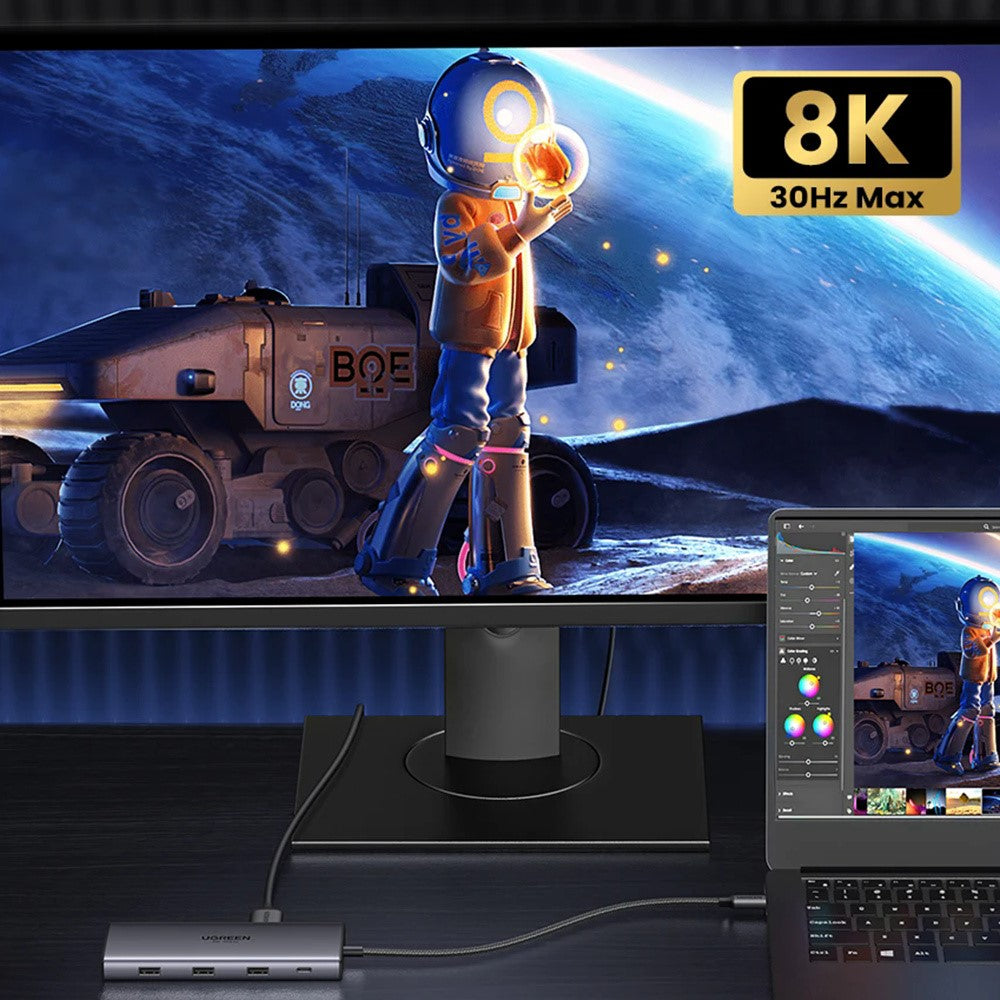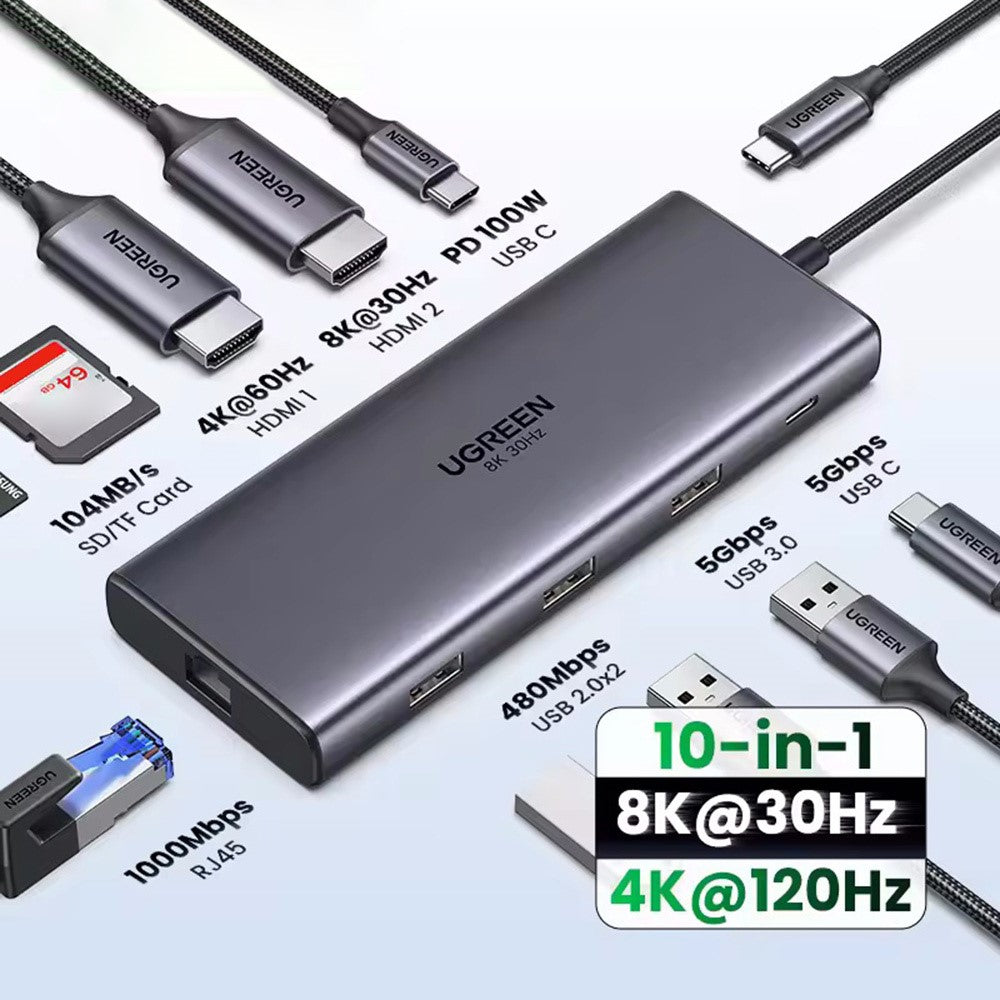 UGREEN 15534 USB-C Hub 8K / 4K HD RJ45 USB 3.0 PD 100W 10 in 1 Aluminum Alloy Adapter