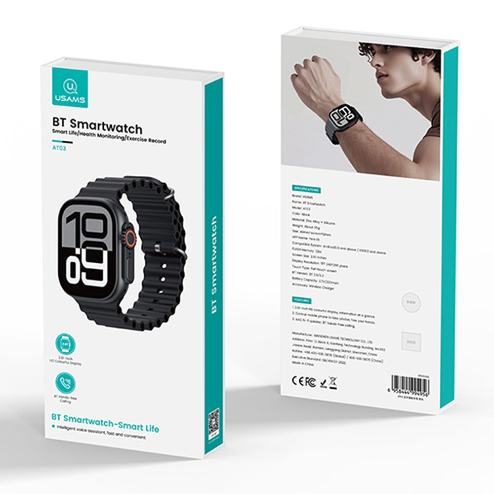 USAMS AT03 2.01 inch Smart Watch Bluetooth-Compatible Sports Tracking Voice Assistant Wristwatch for Android iOS