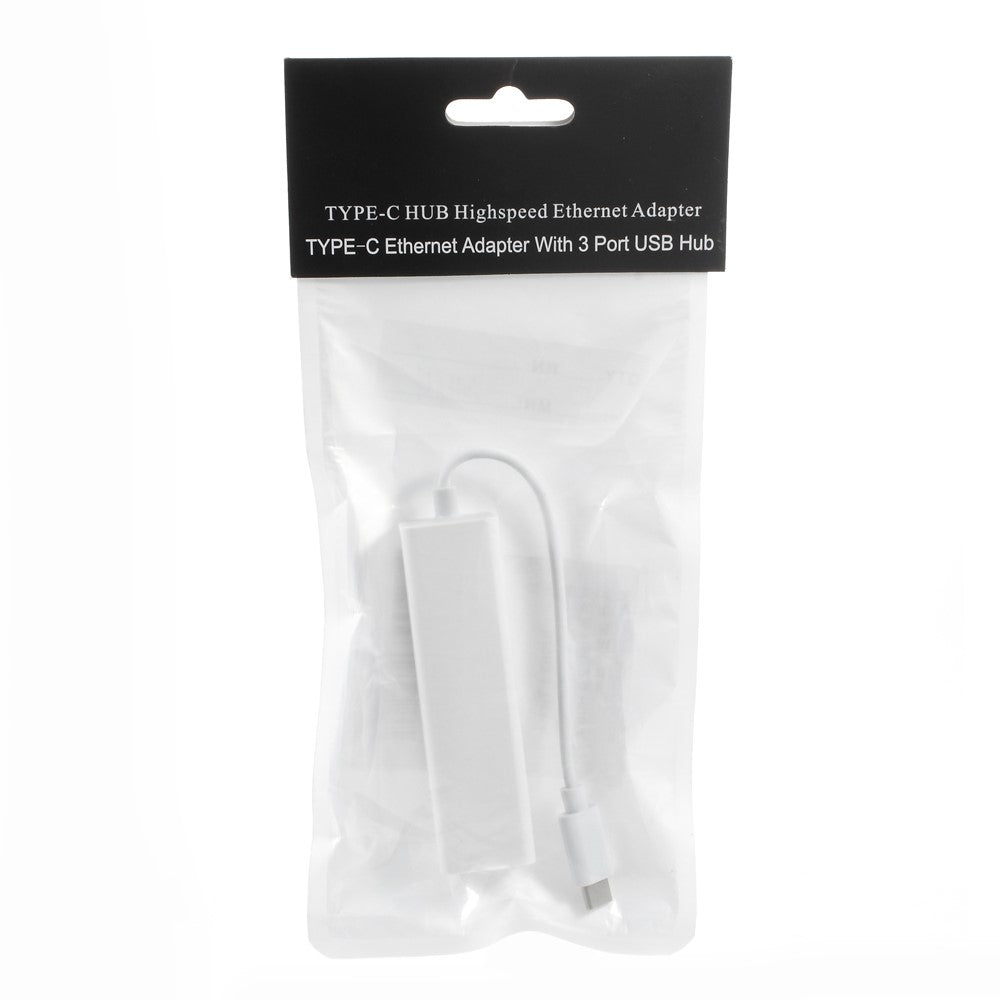 - 1 x USB 3.1 Type C to 3-Port USB 2.0 Hub with Gigabyte Ethernet Adapter for Apple New MacBook 12-inch - White