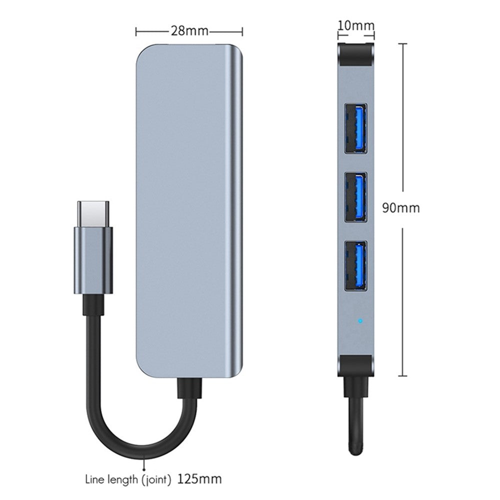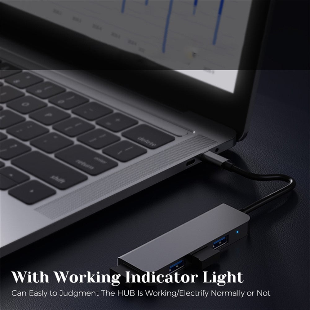 USB C Hub to 4xUSB Ports Adapter Compatible for USB C Laptops and Other Type C Devices