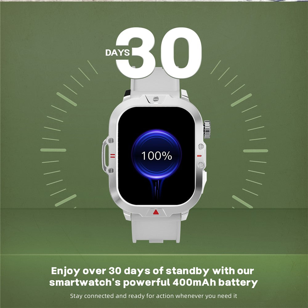 - Long Battery Life: Enjoy over 30 days of standby with our smartwatch's powerful 400mAh battery. Stay connected and ready for action whenever you need it