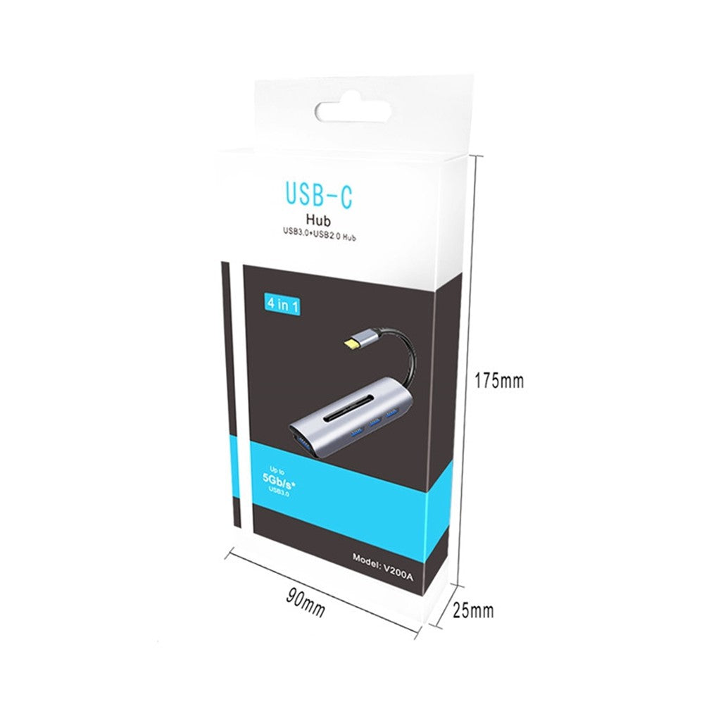 V200A 4-in-1 Aluminum Alloy Type C USB C Hub Adapter to USB 2.0 USB 3.0 Ports for Laptop PC Computer