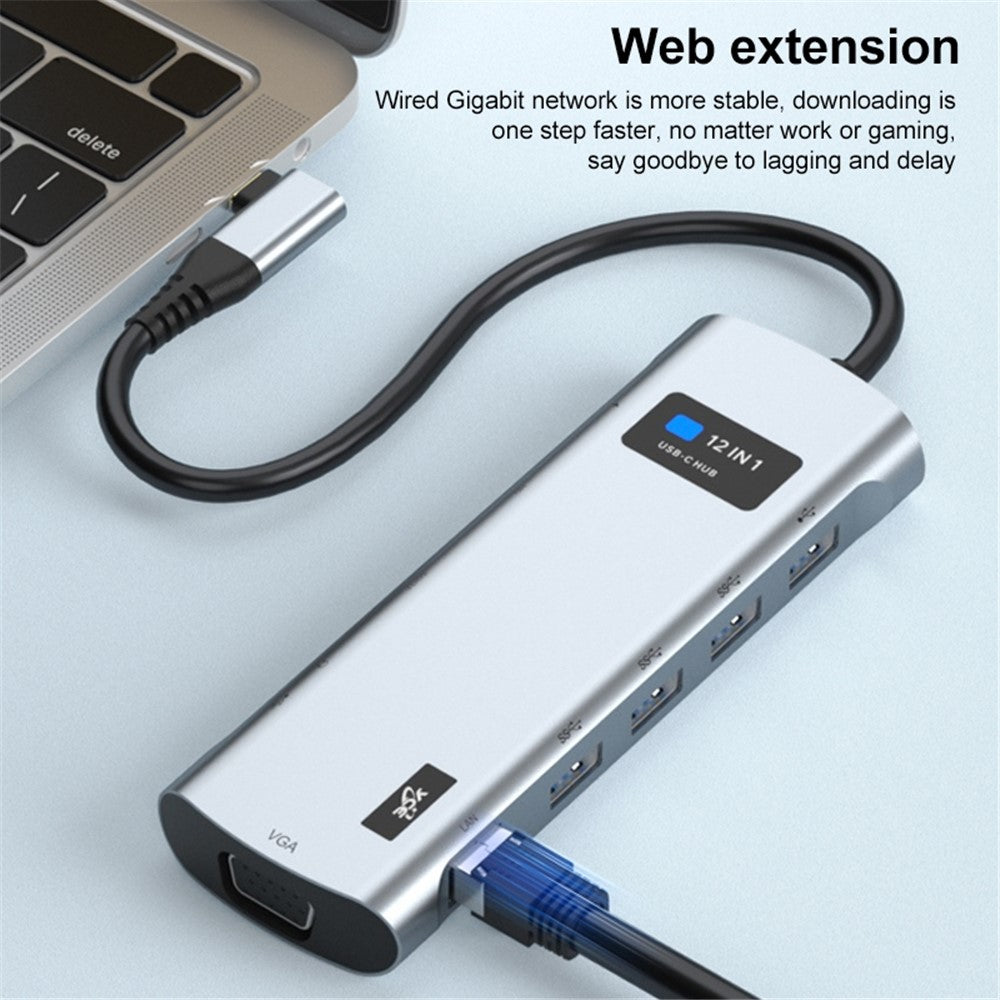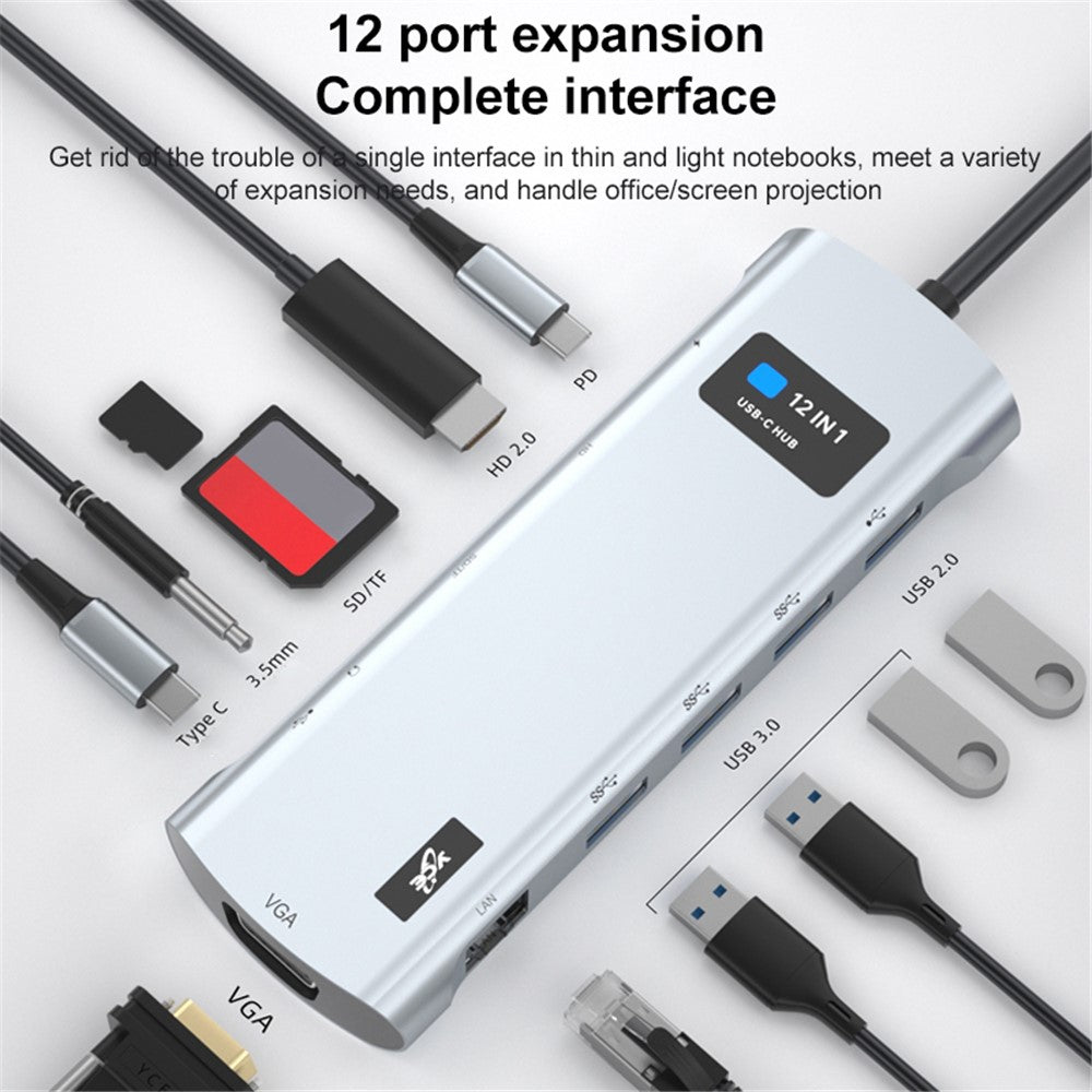 V261A Type-C Hub with PD+USB3.0+USB2.0+Type-C+SD / TF+RJ45+USB Audio+HD+VGA
