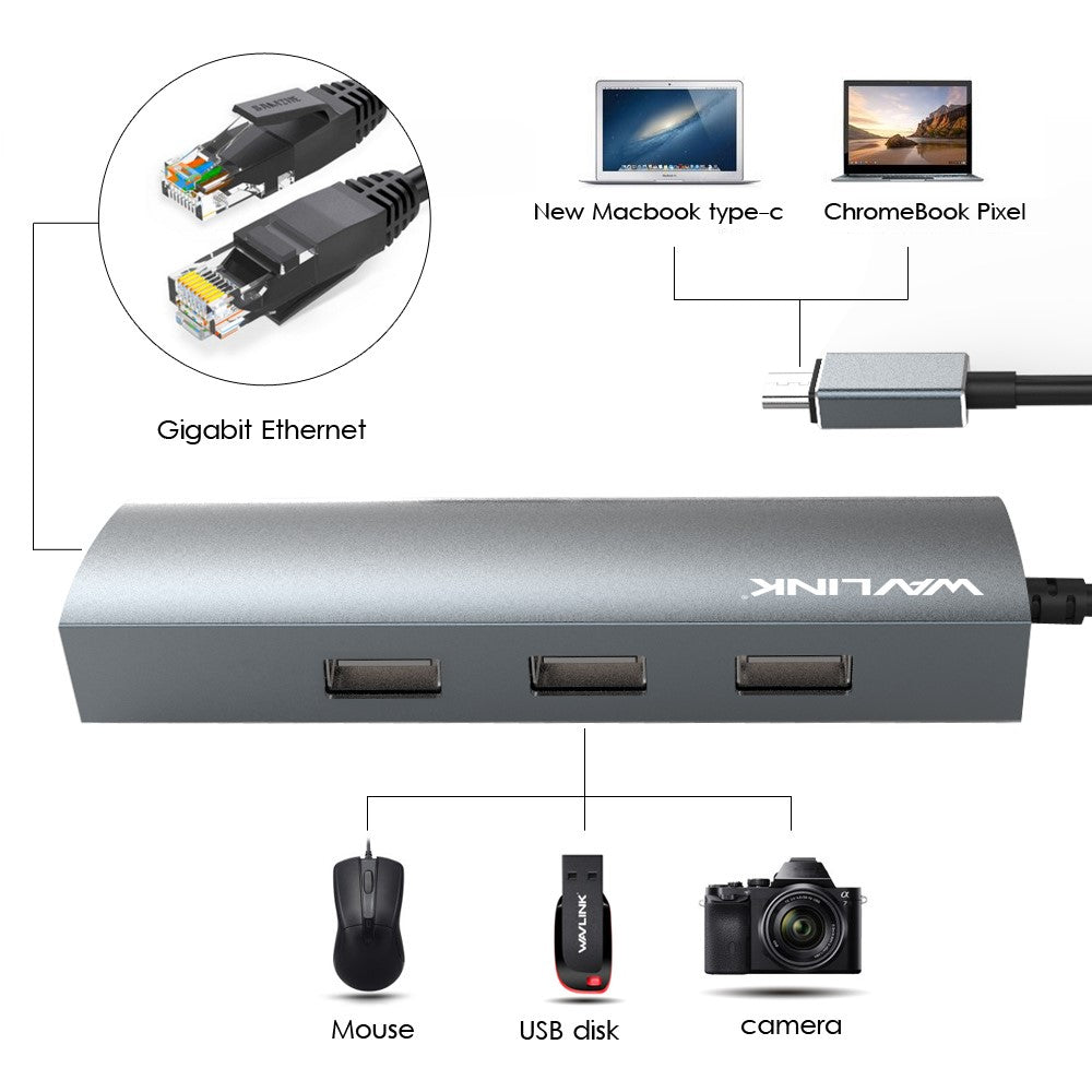WAVLINK UH3031G / C Type-C Hub Mini Adapter to 3 x USB 3.0 + USB-C + RJ45 + DC Power Port