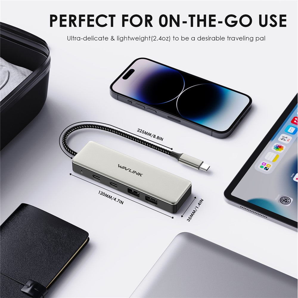 - Ultra-Thin Compact Design: This USB-C hub is ultra-compact, portable, and convenient. It is an ideal travel companion for laptops—simply slip it into your bag or luggage when on the go