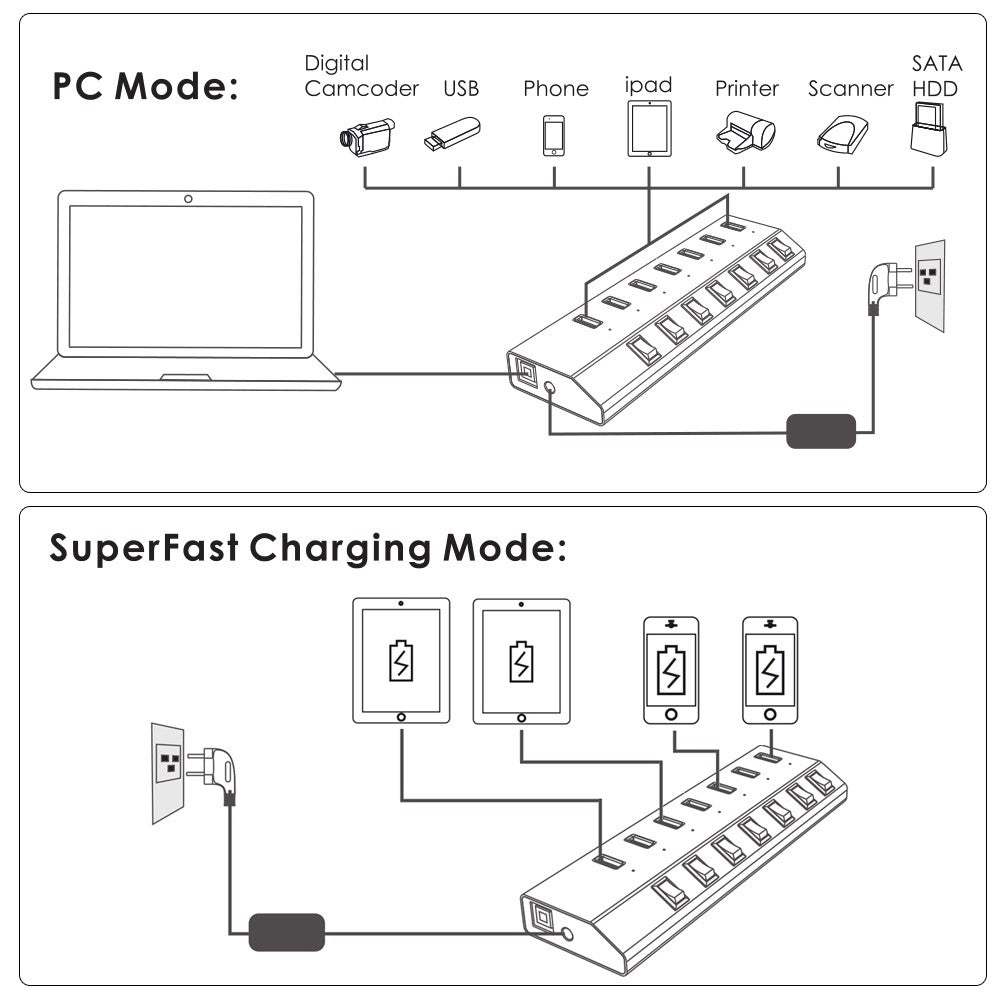 - 5Gbps Data Transfer: This hub features seven high-speed USB 3.0 ports, each supporting data transfer speeds up to 5Gbps. Ideal for quickly transferring high-definition movies and large data files. It is also backward compatible with USB 2.0 and USB 1.1
