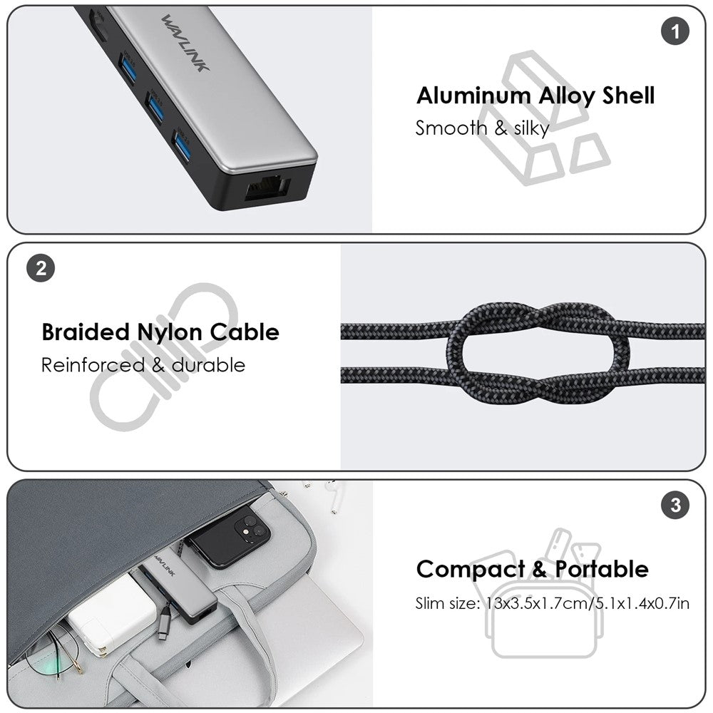 WAVLINK UHP3413 6-in-1 Hub Adapter USB-C Docking Station Support 4K / 100W for MacBook Pro / Air / Thunderbolt 3 / Type-C Devices