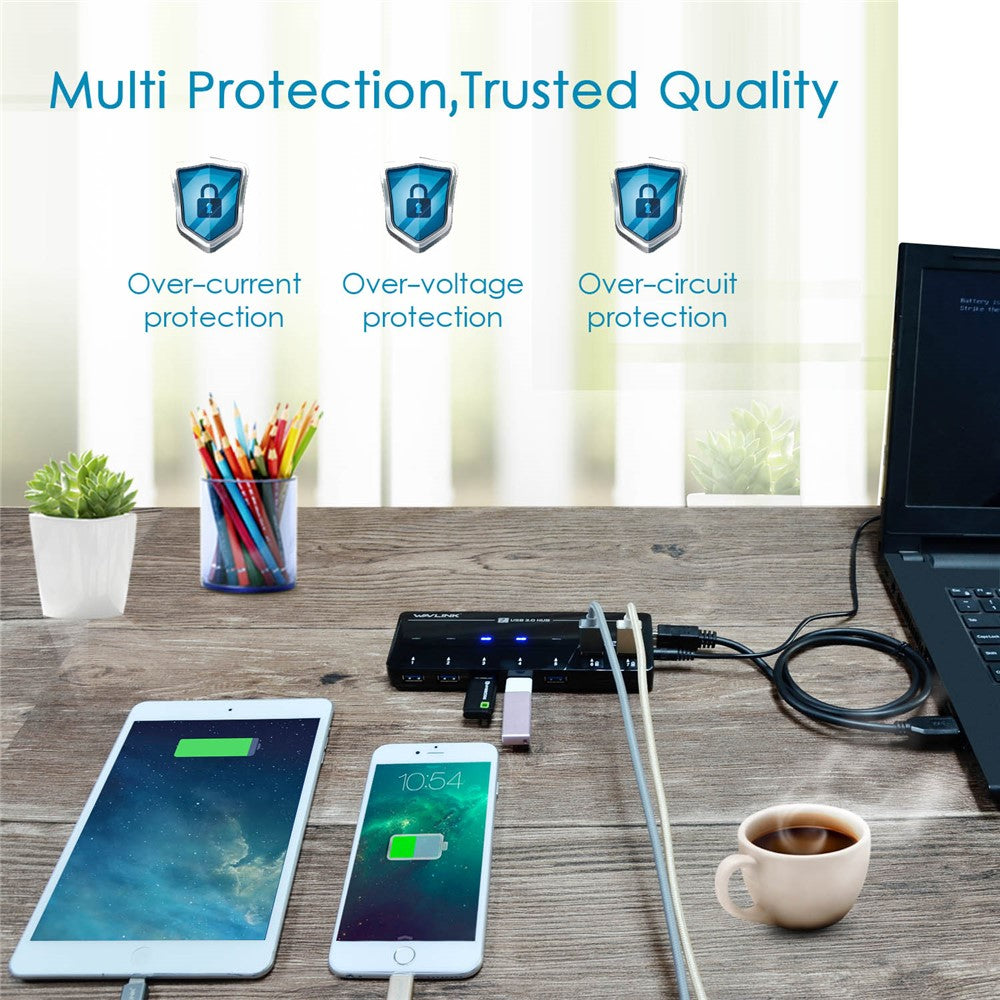 WAVLINK WL-UH3073D SuperSpeed USB3.0 Hub Adapter 7-Port Docking Station with Individual Power Button