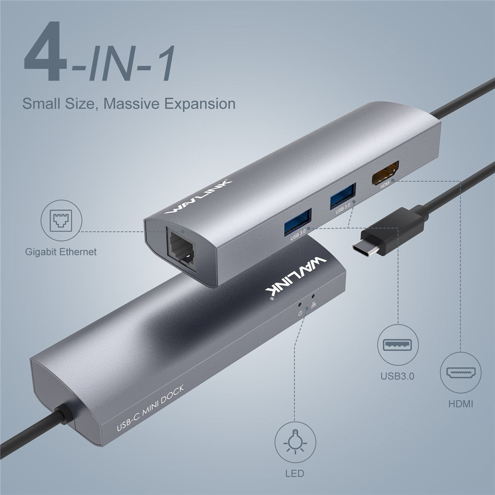 WAVLINK WL-UHP3408 4-in-1 Type-C to HD+2xUSB3.0+Gigabit RJ45 Docking Station USB Hub Adapter
