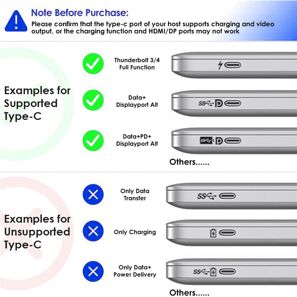 - [Broad Compatibility] The hybrid multi-port docking station is compatible with Thunderbolt 3/4 laptops and devices, featuring a full-function USB-C port that supports video output. It works with Windows, for macOS, Chrome OS, Linux, iPad OS, Android, iOS, and Harmony OS, and is suitable for USB-C desktops, laptops, and OTG-supported tablets/phones
