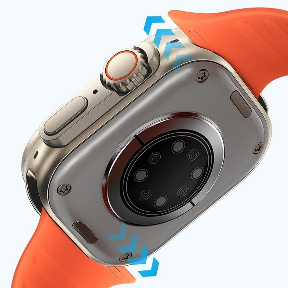 - Two Straps: The smartwatch comes with two interchangeable straps in orange and black, allowing you to switch up your style effortlessly